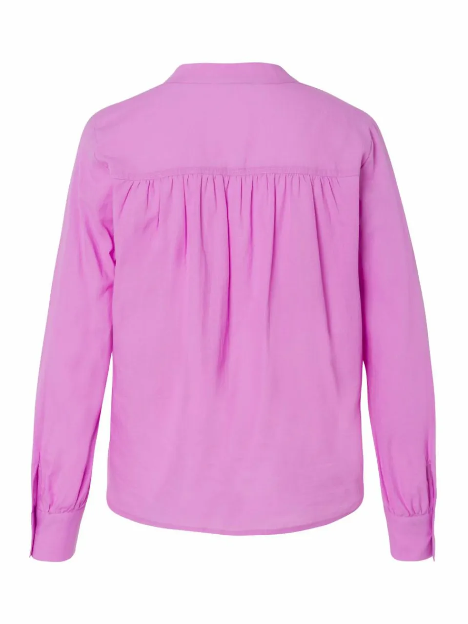 Diese leichte Bluse überzeugt durch ihr minimalistisches Design und dezente Raffungen an den Schultern. Der luftige Stoff sorgt für hohen Tragekomfort, während die Manschetten und der V-Ausschnitt das elegante und vielseitige Design perfekt abrunden.
