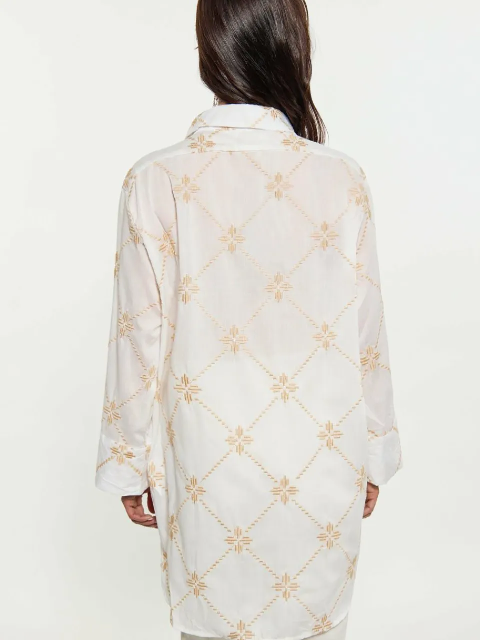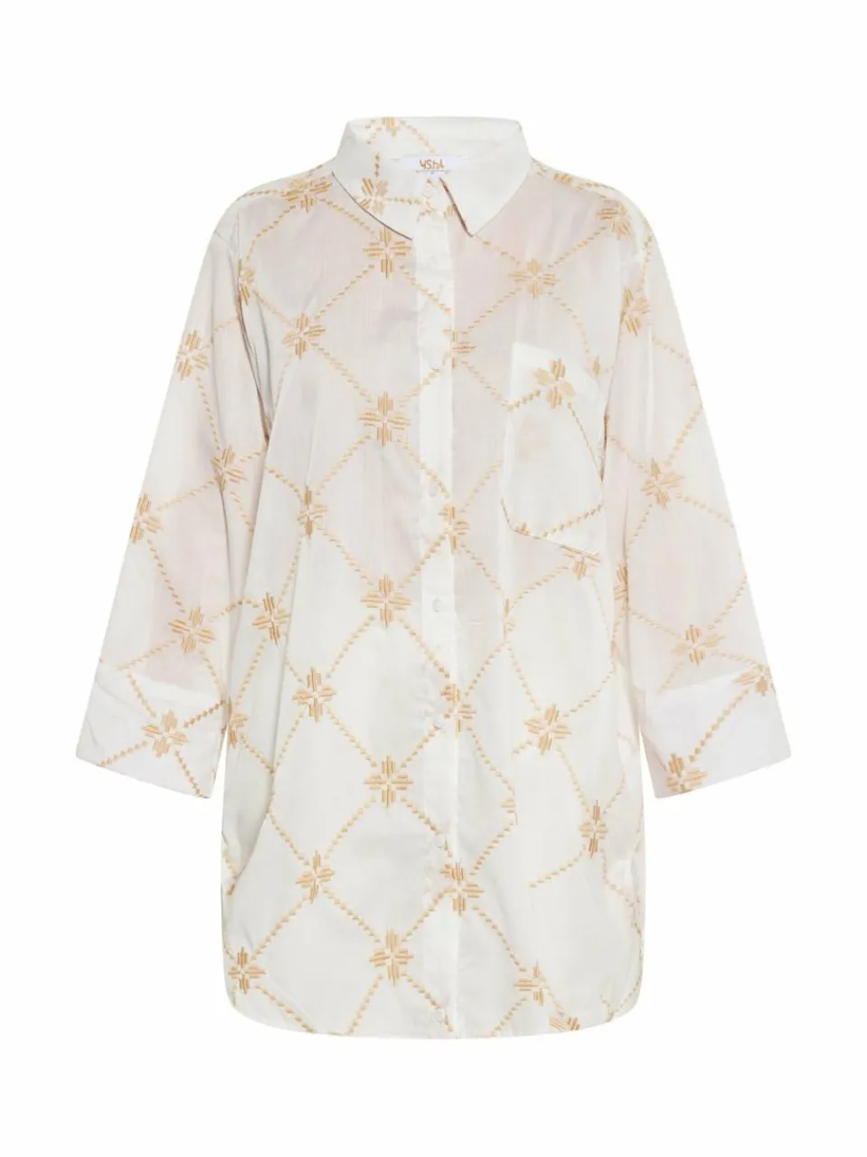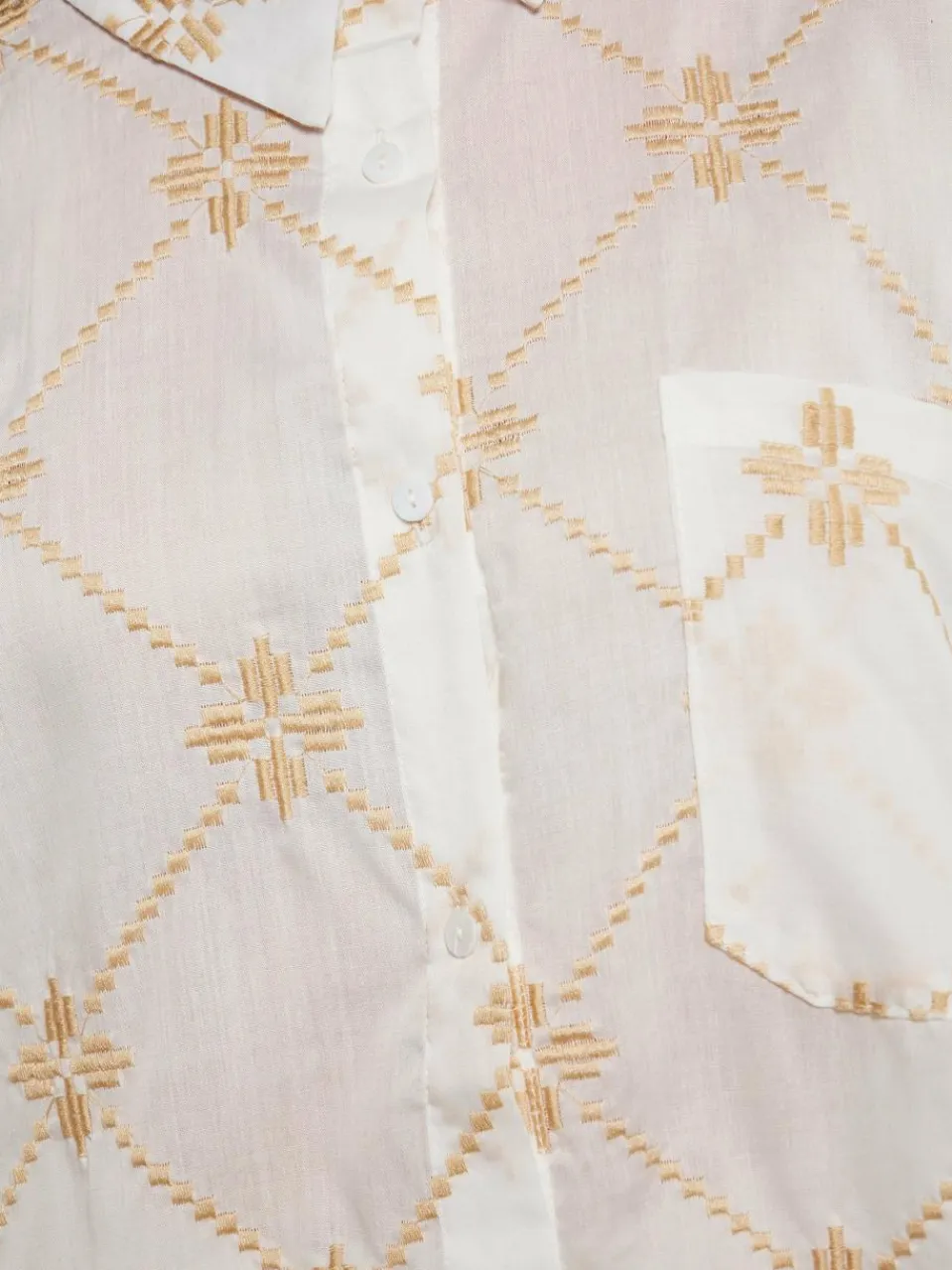 Discover the charm of this shirt with special embroidery, designed for both comfort and style. The buttoned-up front and pointed collar enhance its sophistication, while wide sleeve ensure ease of movement. Ideal as a festival shirt or casual wear, this cotton shirt features a unique pattern and a single chest pocket.