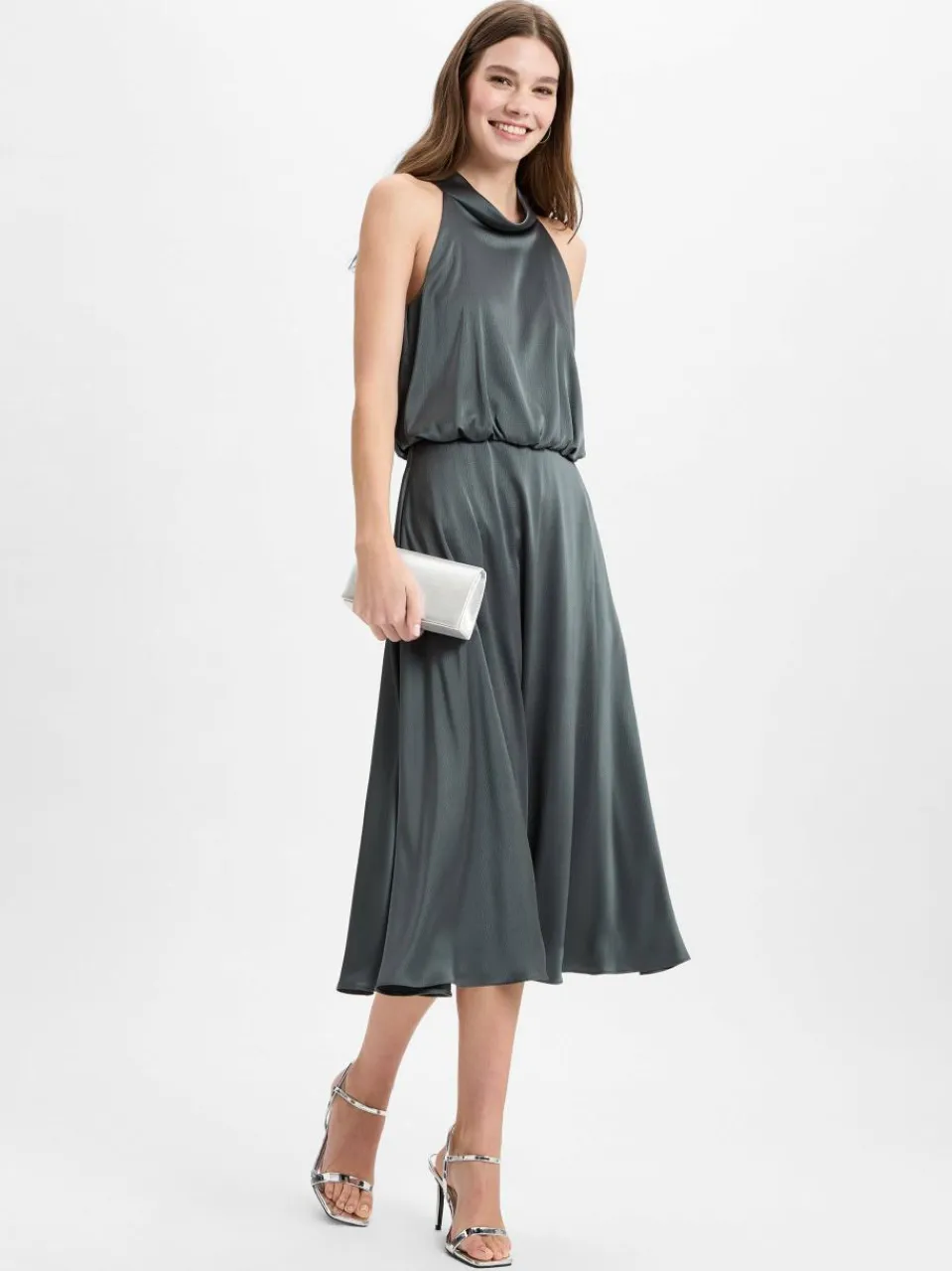 - taillierte Passformamerikanische SchulternBindedetail und Nahtreißverschluss hintenCutout hintenunterfüttertKunstfaser-Qualität