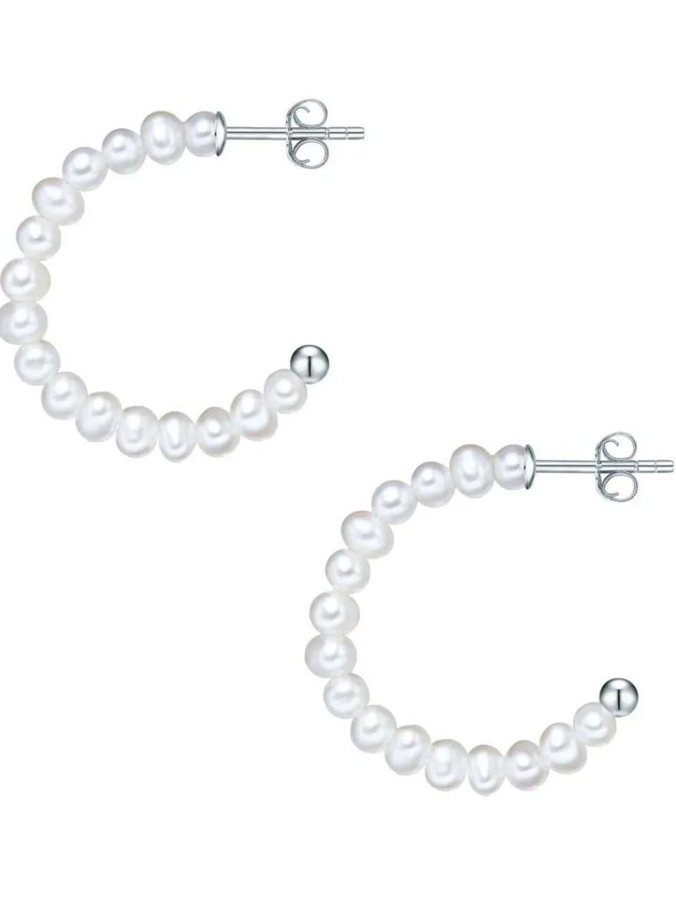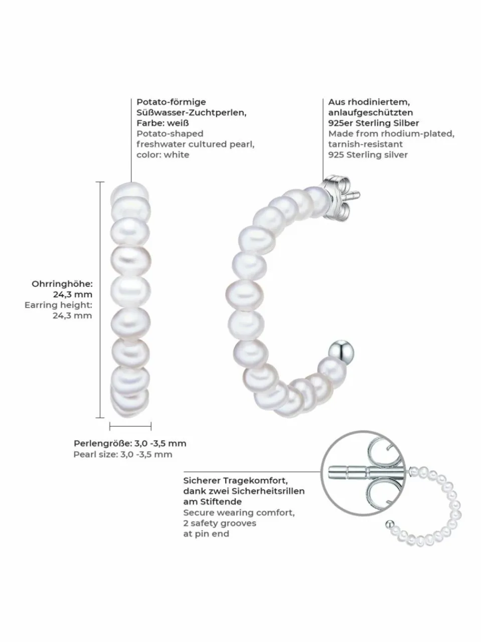 Perlen ja, aber bitte trendbewusst interpretiert? Mit diesen faszinierenden Perlencreolen trifft das Label Valero Pearls den Nerv der Zeit. Kleine, potatoförmige Perlen bilden Halbcreolen, die mit Steckern aus rhodiniertem, anlaufgeschütztem Sterlingsilber am Ohrläppchen befestigt werden und sanft irisierend schimmern. Alle Perlen sind hochwertige Süßwasser-Zuchtperlen, handverlesen und mit brillantem Lüster.