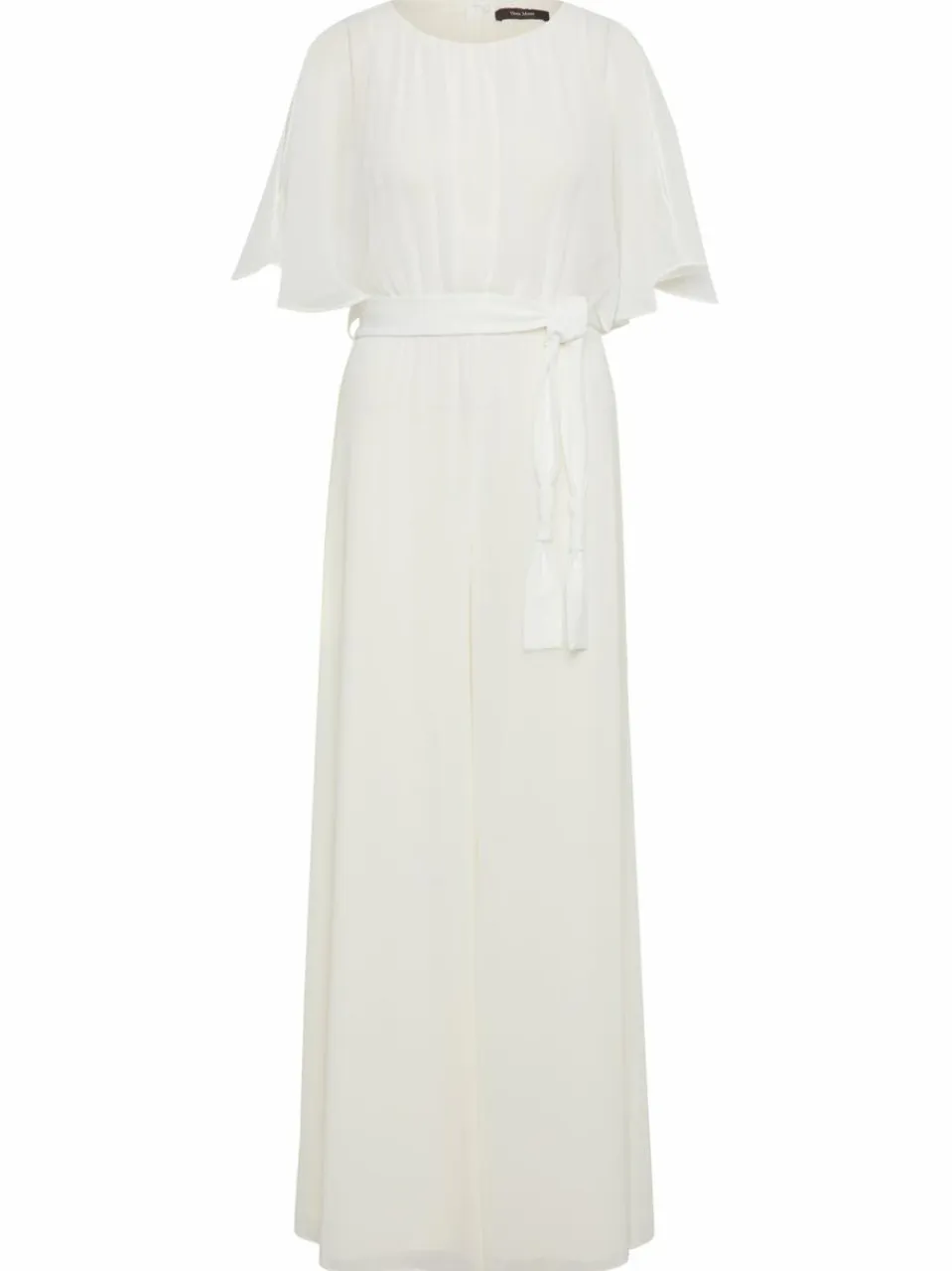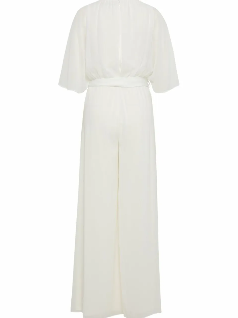 Ein absoluter Hingucker! Dieser elegante Jumpsuit aus Chiffon besticht durch sein einzigartiges Design. Mit einem ausgestellten Schnitt und einer Raffung/Kräuselung zaubert er eine feminine Silhouette. Der Rundhalsausschnitt und die Fledermausärmel mit Schlitz verleihen dem Outfit eine modische Note. Der Gürtel betont die Taille und der praktischen Reißverschluss macht das An- und Ausziehen einfach. Ideal für besondere Anlässe oder einen stilvollen Abend!