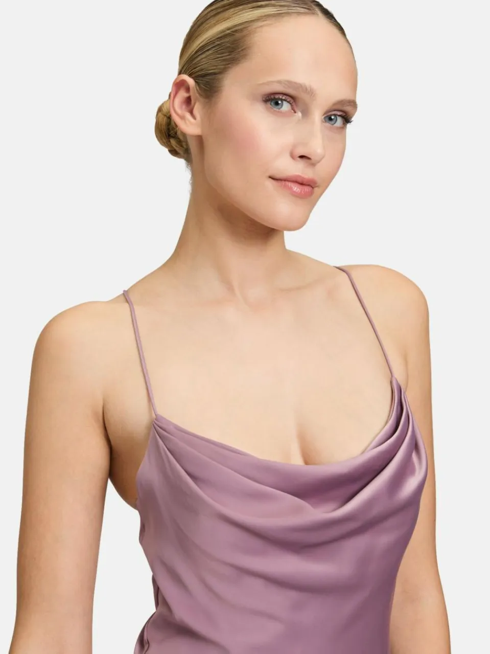 Dieses Teil setzt Sie perfekt in Szene! Entdecken Sie das unifarbene Abendkleid von Vera Mont aus Polyester und Satin. Der Wasserfallausschnitt in Kombination mit der Schnürung am Rücken sorgt für ein atemberaubendes Design. Das ärmellose Kleid überzeugtzudem mit Spaghetti-Trägern und einer figurumspielenden Passform. Für einen leichten Einstieg sorgt ein zusätzlich integrierter Reißverschluss.
