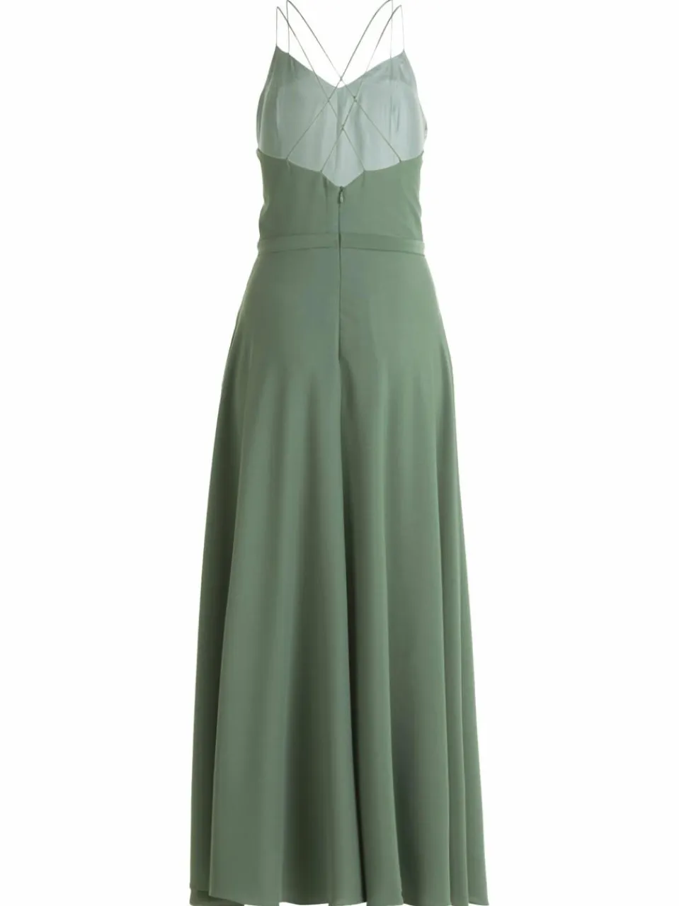 Dieses Abendkleid von Vera Mont setzt Ihre Figur stilvoll in Szene. Die taillierte Passform und praktischen Nahttaschen sorgen für Modernität, während schlichte Spaghettiträger und das unifarbene Design Eleganz verleihen. Der Volantschnitt und die Maxi-Läge machen das ärmellose Kleid zu einem echten Hingucker – ideal für besondere Anlässe!