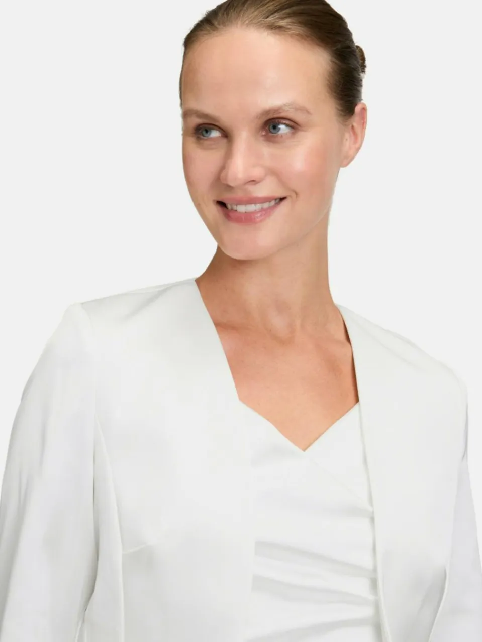 Ein absolutes Basic Must-have für Ihren Kleiderschrank! Dieser Bolero mit Kellerfalten und Ärmelschlitz passt perfekt zu jedem Abend- oder Cocktailkleid. Durch den leicht taillierten Schnitt lässt sich der Bolero mit Ärmel in 3/4 Länge bestens zu den Kleidern von Vera Mont kombinieren. Das Feinmaterial Satin garantiert zusätzlich einen hohen Tragekomfort. Perfekt zum Überwerfen geeignet!