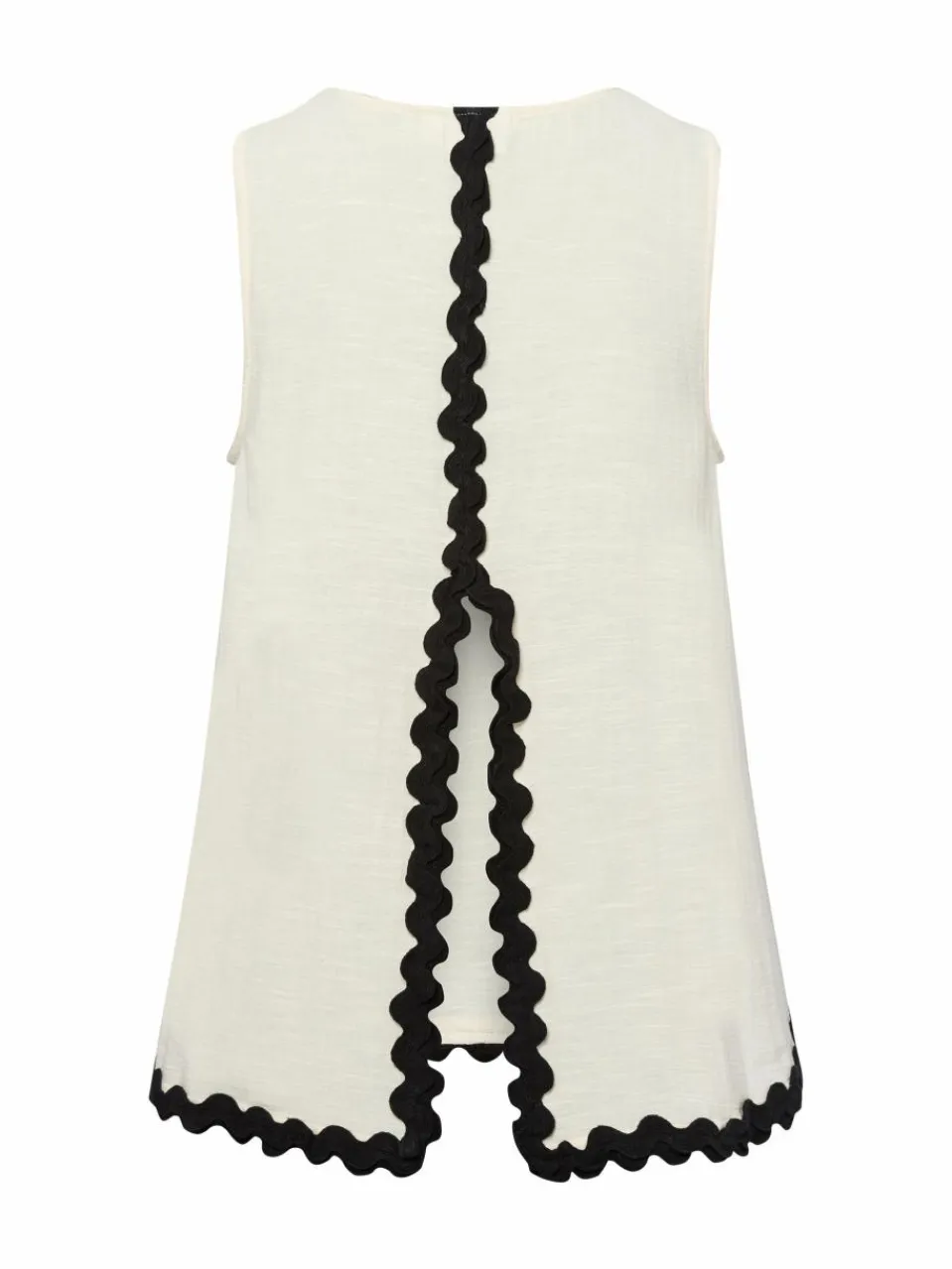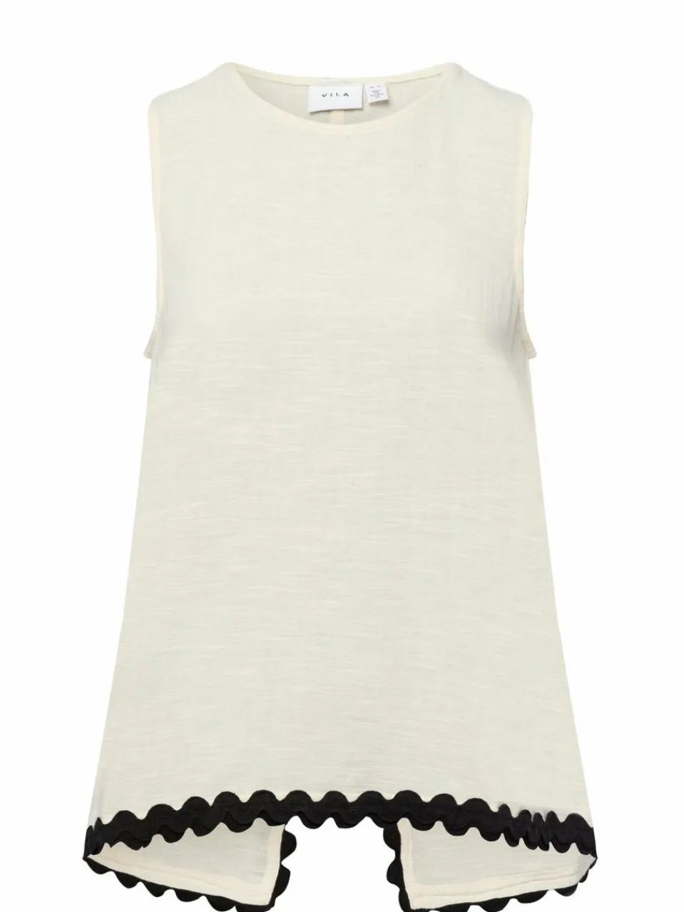 Das Baumwoll-Top VIManda von Vila ist mit der luftigen Baumwoll-Qualität, dem lockeren A-Linien-Schnitt und den kontrastfarbenen Spitzenbordüren eine ideale Ergänzung für sommerliche Freizeit-Looks.