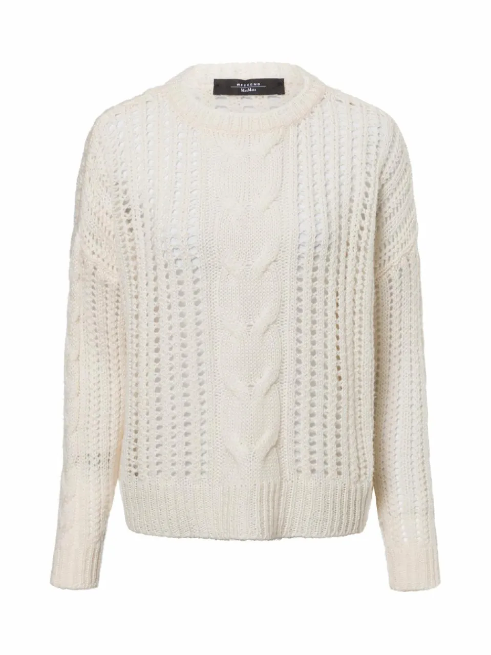Das Lochstrickmuster schenkt dem Weekend Max Mara Pullover Grammo einen romantischen Look, während die Schurwoll-Qualität und die oversized Passform den Tragekomfort boosten.