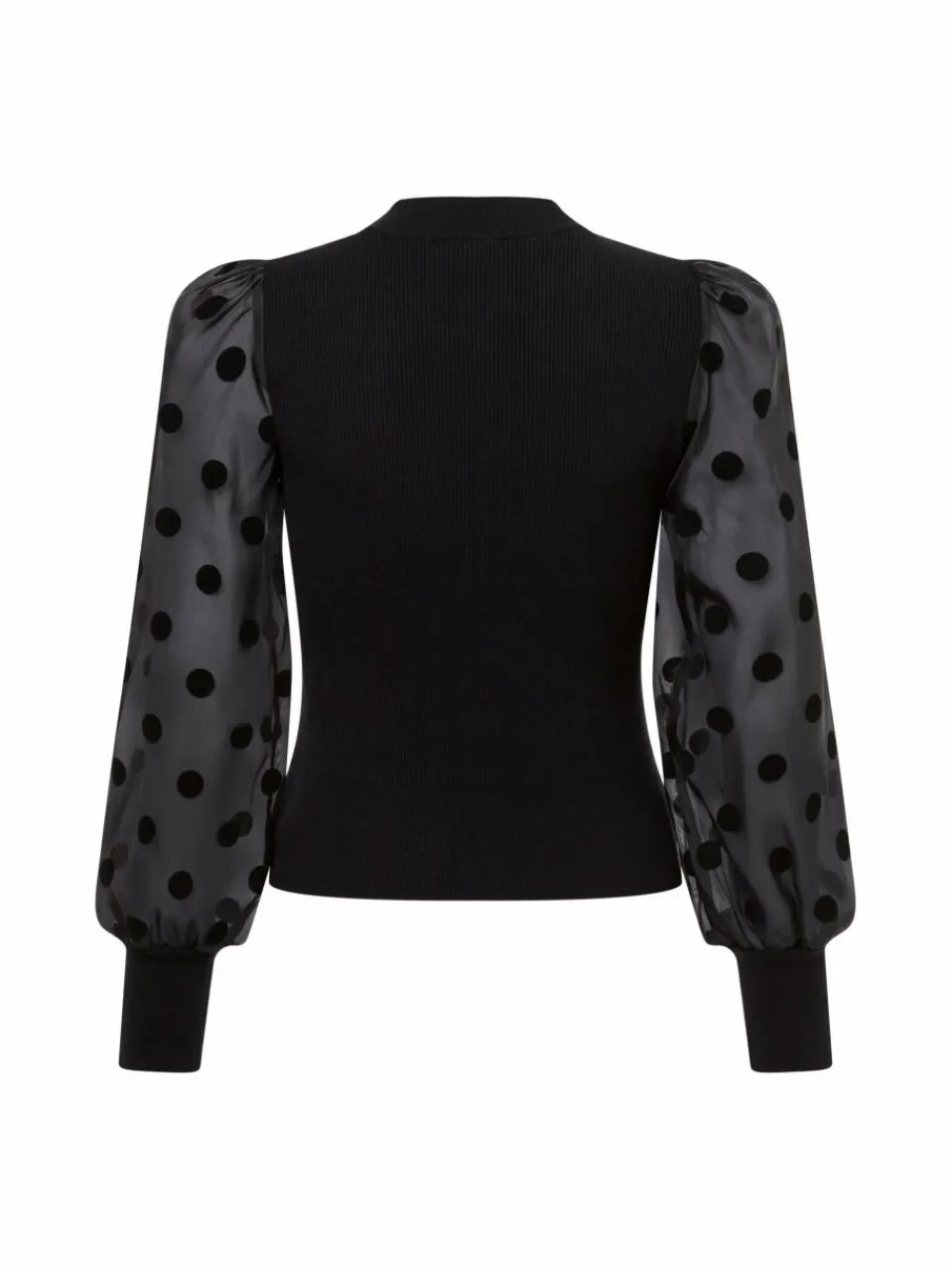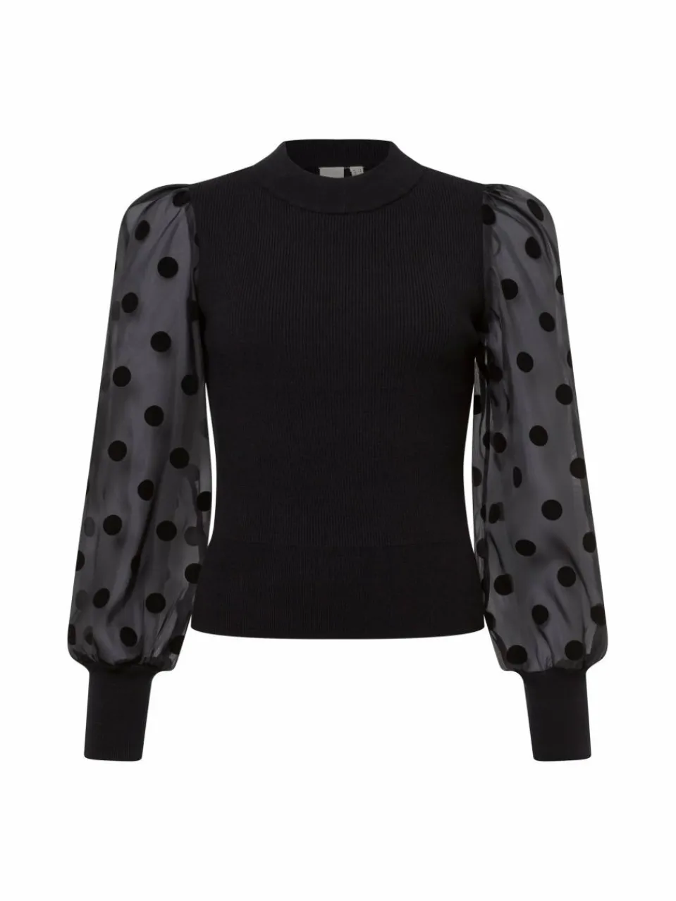 Der YASDOTME Pullover ist die perfekte Mischung aus Klassiker und Cool – durch die modernen, semitransparenten gepunkteten Ärmel, wird der Strickpullover zum besonderen Hingucker.