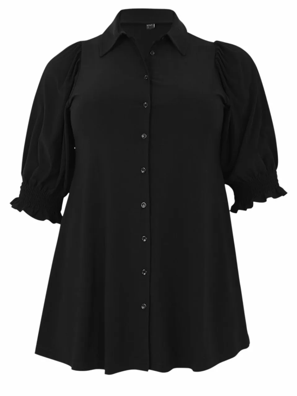 Bluse mit Puffärmeln und gerader Passform. Die Bluse hat einen klassischen Kragen mit geknöpfter Vorderseite. Es besteht aus unserem weichen Dolce-Material.