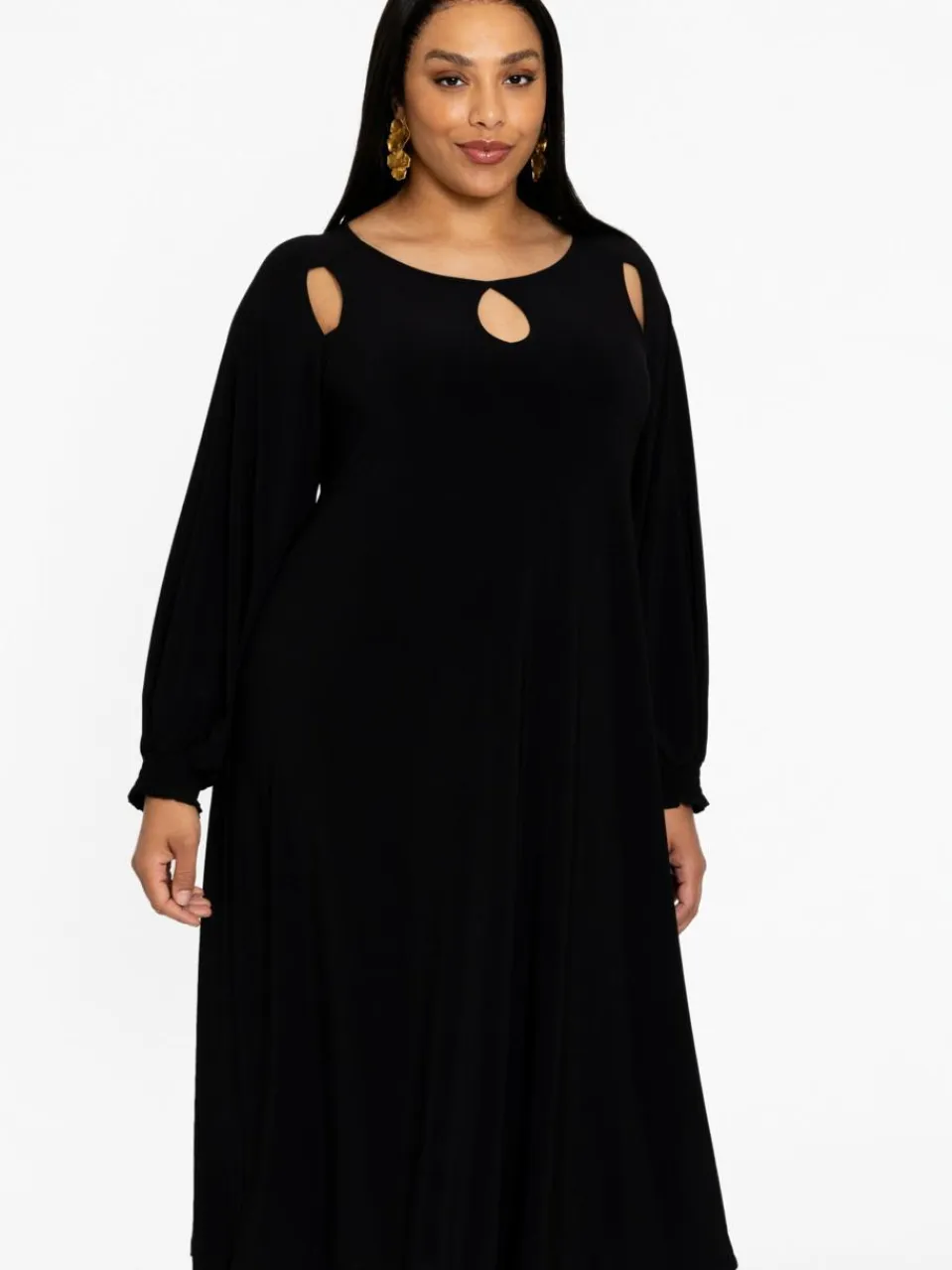 Werten Sie Ihren Abendlook mit diesem eleganten Dolce-Kleid auf. Mit schicken Tropfenausschnitten am Ausschnitt und an den Schultern sowie fließenden langen Ärmeln verbindet es Eleganz mit einem Hauch von Verführung. Dieses Kleid ist perfekt für besondere Anlässe und lässt sich wunderbar mit auffälligem Schmuck und High Heels für einen mühelosen Stil kombinieren.