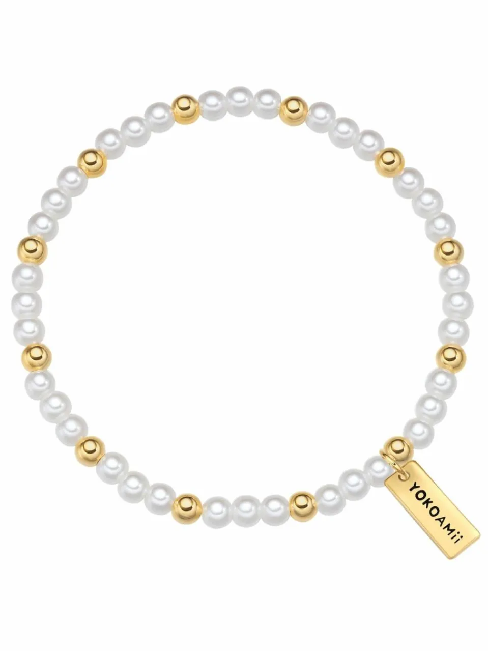 Das Trendlabel YOKOAMii macht Perlenschmuck für jedermann und übersetzt Perlenklassiker in einen erschwinglichen Materialmix mit modernen Designs. Diese Schmuck-Philosophie passt zu dir? Dann wirst du dich in dieses zauberhafte Armband verlieben! Blickfang ist die Kombination aus perfekt gerundeten synth. Perlen im Wechsel mit kleinen Perlen aus 14-karätig gelbvergoldetem Metall – ein Bracelet, das zur Jeans ebenso gut aussieht wie zum festlichen Kleid oder im Büro.