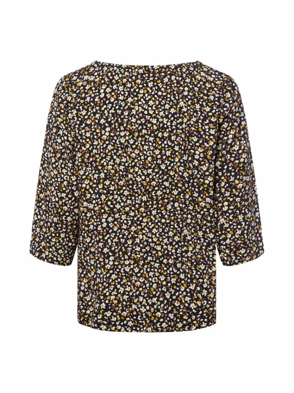 Verleiht dem Look ein verspieltes Finish: das zero Blusenshirt aus reiner Viskose mit 3/4-Ärmeln und abstraktem Millefleurs-Muster.