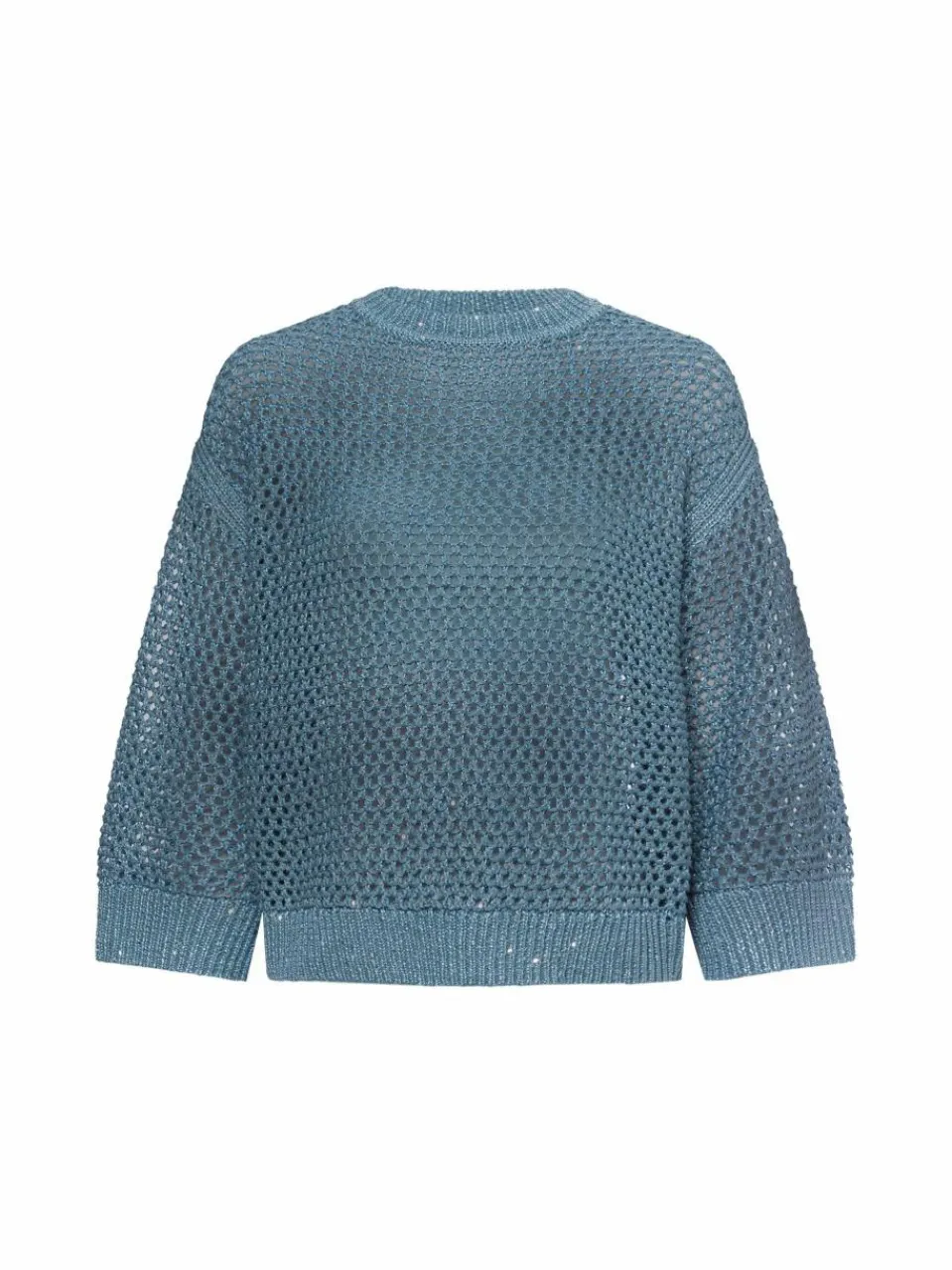 Der Lochstrickpullover von zero aus softem Baumwollmix mit dezent eingearbeiteten Pailletten vereint lässige Strickstruktur mit einem Hauch Glamour – perfekt für stilvolle Alltags-Looks mit besonderem Twist.