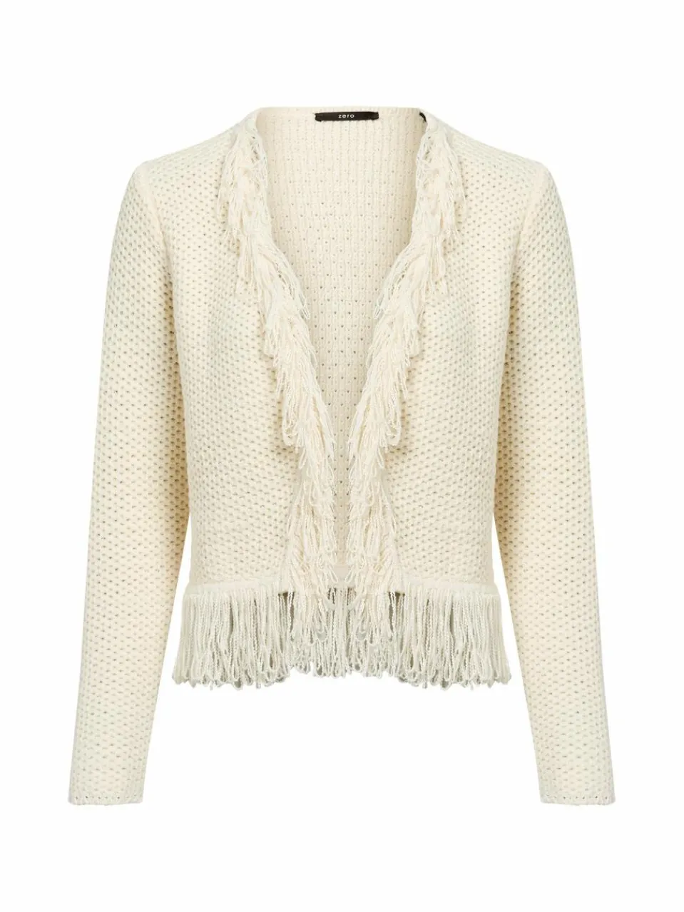 Die Schlaufen-Fransen entlang der Front und des Saumes verleihen der strukturierten Strickhülle von zero ein stylishes Finish.