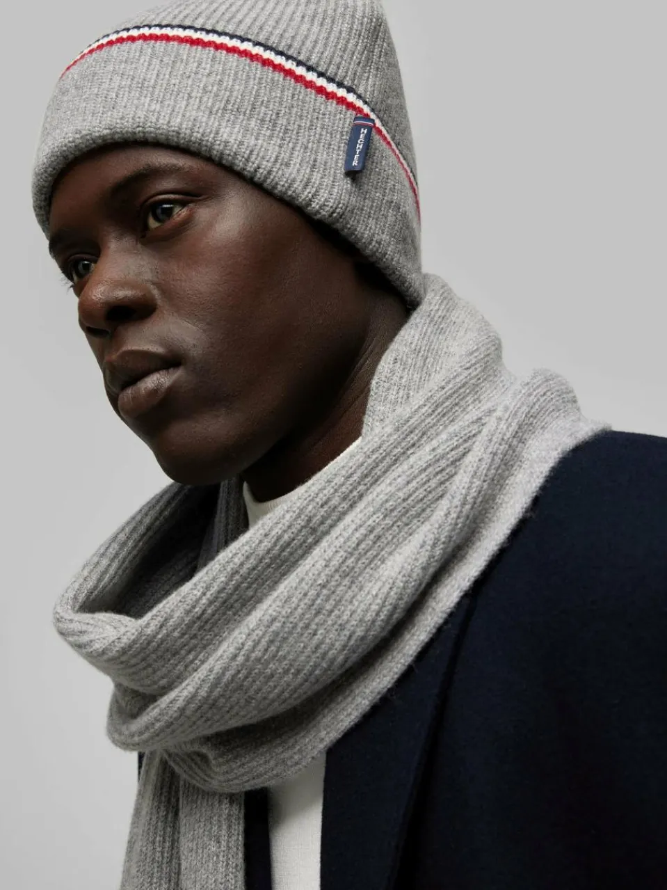 Sehr softe HECHTER PARIS Strickmütze, Grobstrick, mit kleinem Logo Flag