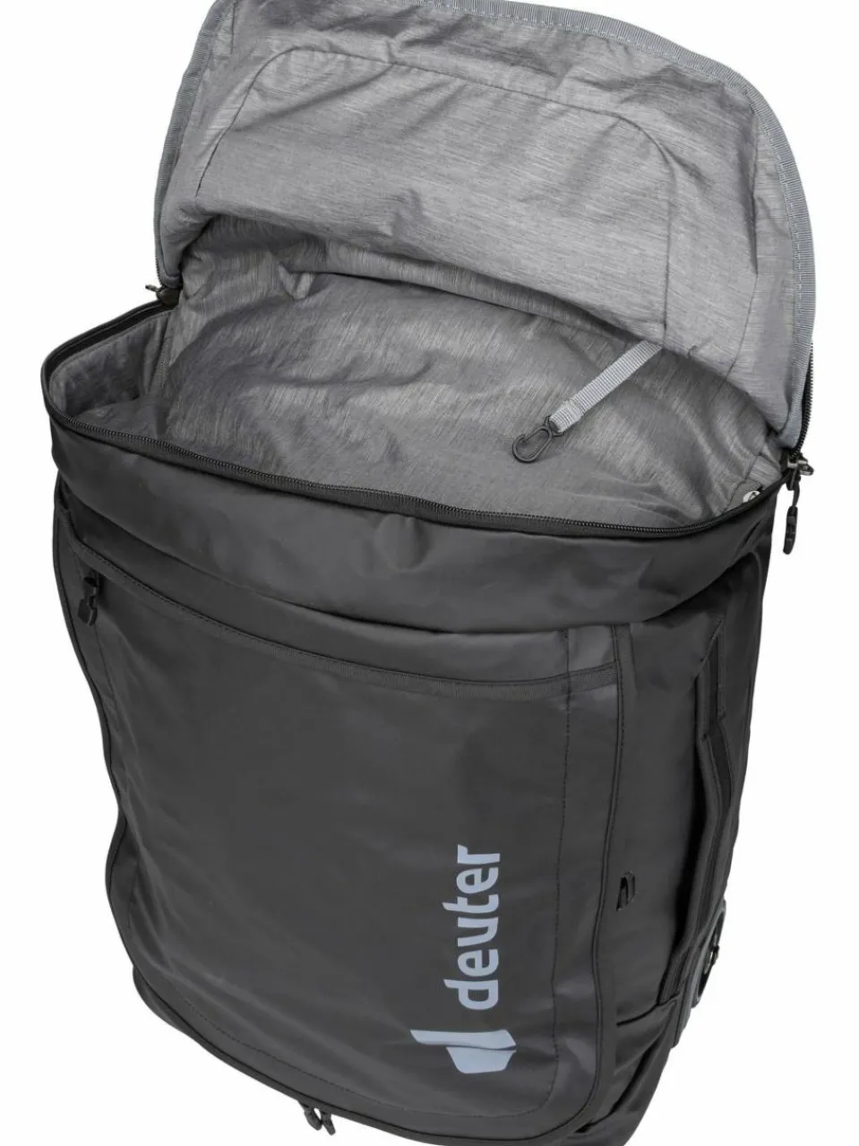 Diese wasserabweisende Rollreisetasche von Deuter aus beschichtetem Polyestergewebe bietet optimalen Schutz und hervorragende Funktionalität.