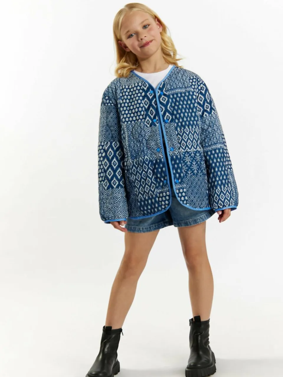 Die in Wellen gesteppte Kinderjacke von DreiMaster ist für Mädchen eine ideale Ergänzung der Sommergarderobe. Das hübsche, vielseitige Design aus einem Baumwollgemisch zeigt ein harmonisches Patchworkmuster mit kontrastierendem Innenfutter und Druckknöpfen.