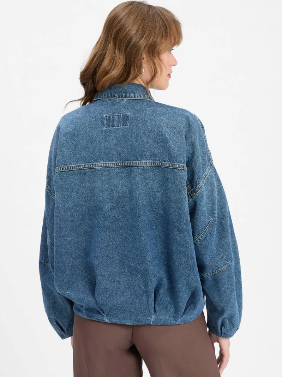 Raffungen und doppellagiger Saum verleihen der Cropped-Jeansjacke Blaxton von Drykorn im Blouson-Stil ihren modernen Look – der Baumwoll-Lyocell-Mix bietet dazu lässigen Komfort mit Stil.