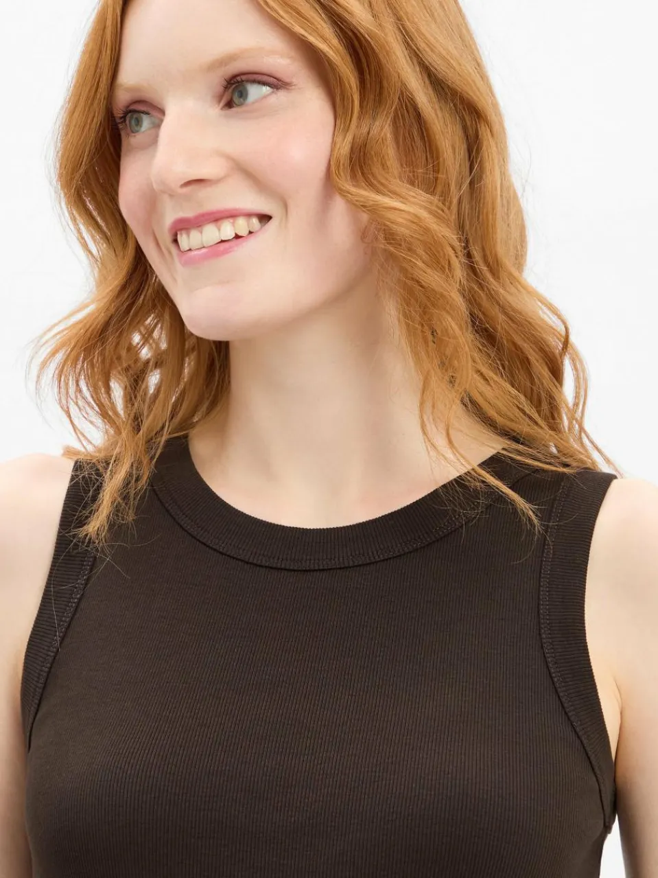 Das Tanktop Olina von DRYKORN punktet in figurnaher Passform als urbaner Style-Favorite zu Röcken und Shorts für warme Tage oder als Layering-Base.
