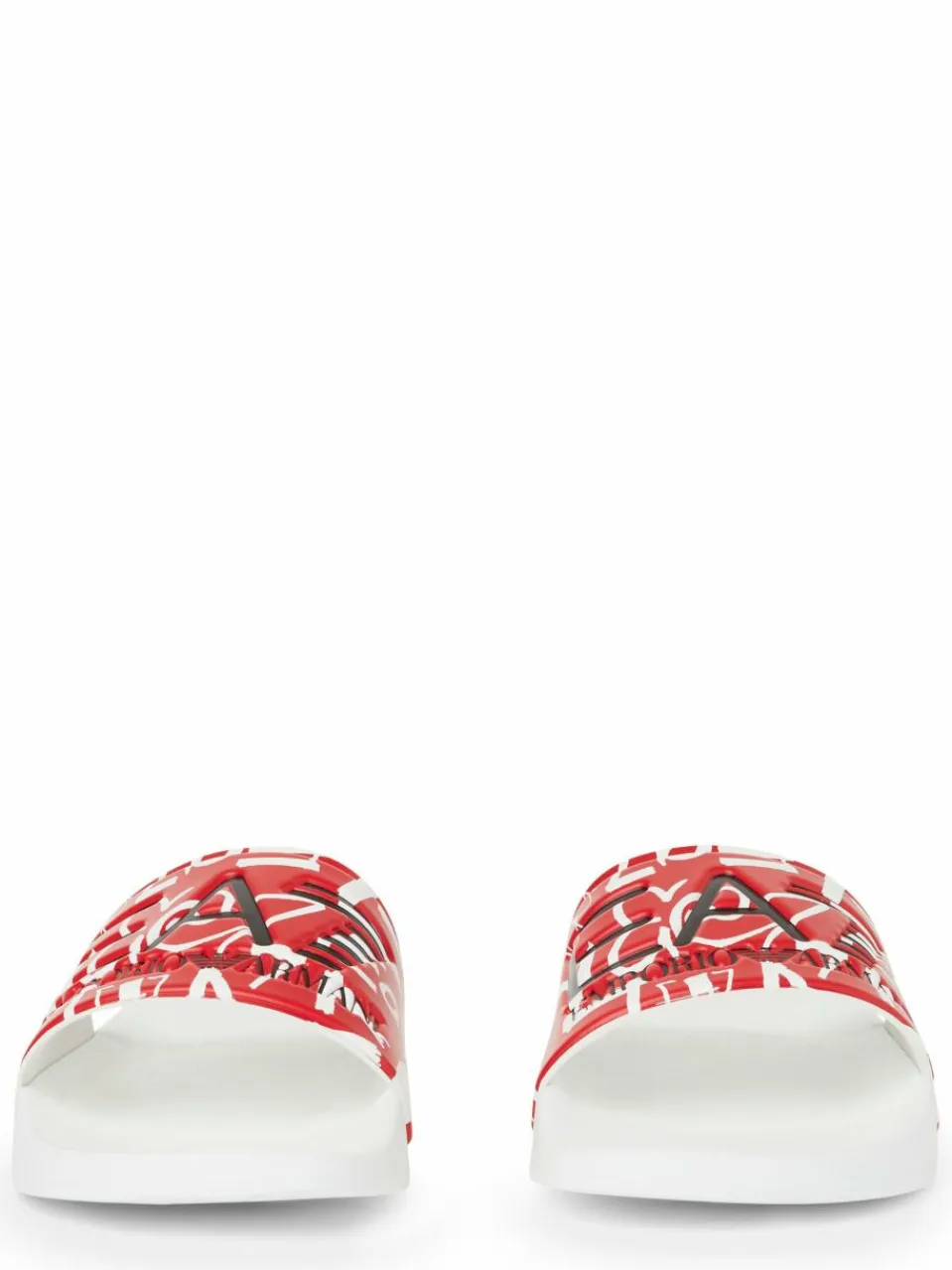 Die Slides von EA7 Emporio Armani zeigen mit dem großen Branding, wie cool Badeschuhe sein können.