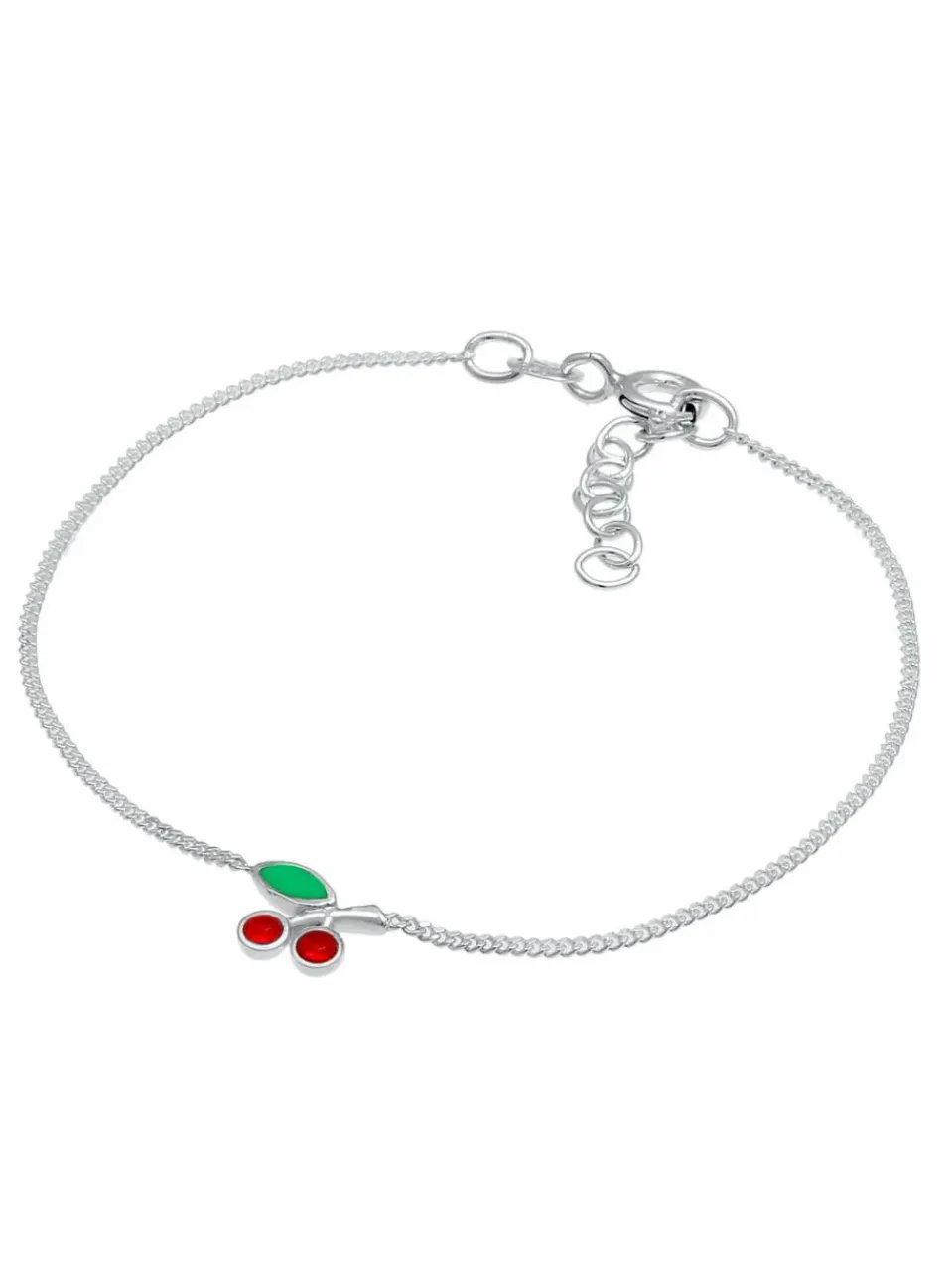 Dieses süße Kinder Armband begeistert durch sein verführerisches Kirsche Design. Der eingearbeitete Anhänger leuchtet durch sein mit Emaille verzierten Blätter und zwei Kirschen aus Kristallen in Rot. Ein hübsches Schmuckstück das zu sommerlichen Mädchen Outfits die perfekte Ergänzung ist.Zum Schutz unserer Kleinsten empfehlen wir das Tragen von Schmuckstücken für Kinder unter 3 Jahren nur unter Aufsicht von Erwachsenen, da kleine Teile unter Umständen verschluckt werden könnten.