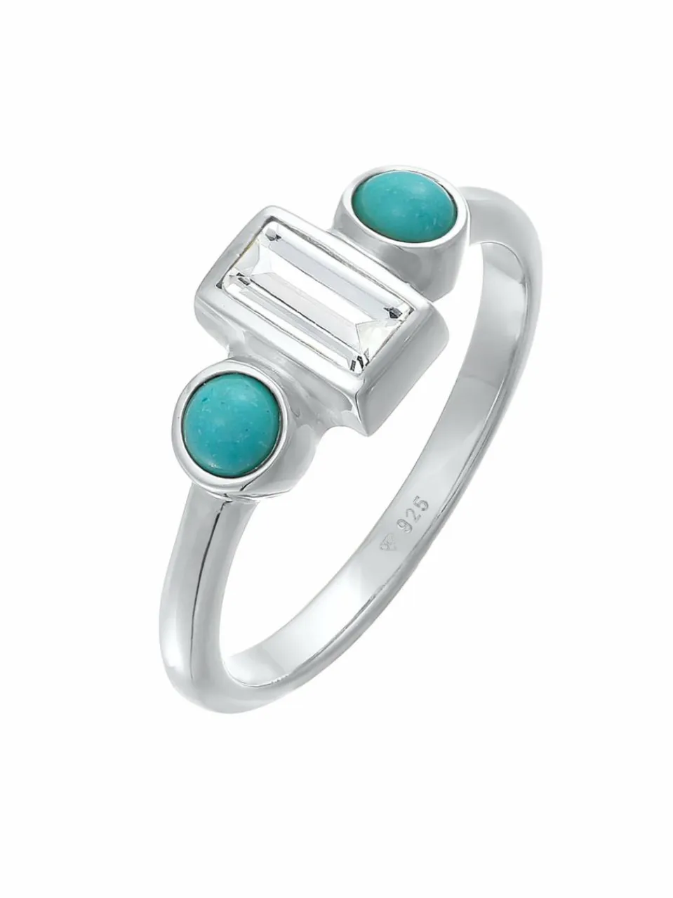 Dieser hinreißende Damen Ring, lässt Frauenherzen höherschlagen. Bezaubernd funkelnd und modern in der Form, setzt sich der Topas Edelsteine gekonnt in Szene. Der strahlende Mittelstein wird von zwei Howlith Steinen in Türkis begleitet. Der Kontrast zwischen klassischer Eleganz und trendigem Design passt zu zahlreichen Styles. Ein Eyecatcher für die Ewigkeit.