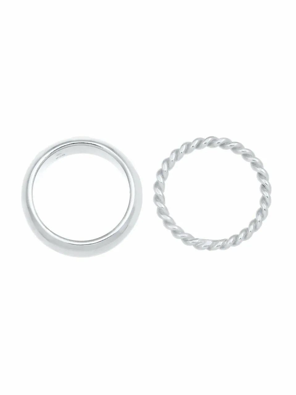 Dieses schlichte Ring Schmuckset lässt sich nach Belieben kombinieren. Mit der polierten Oberfläche ziert der glänzende Bandring als zeitloses Schmuckstück jede Handbewegung. Kombiniert mit dem Stacking Ring im gedrehten Design wird dieses Set ein stilvoller Begleiter. Dieses wunderschöne Accessoire ist perfekt für deinen Alltagslook.