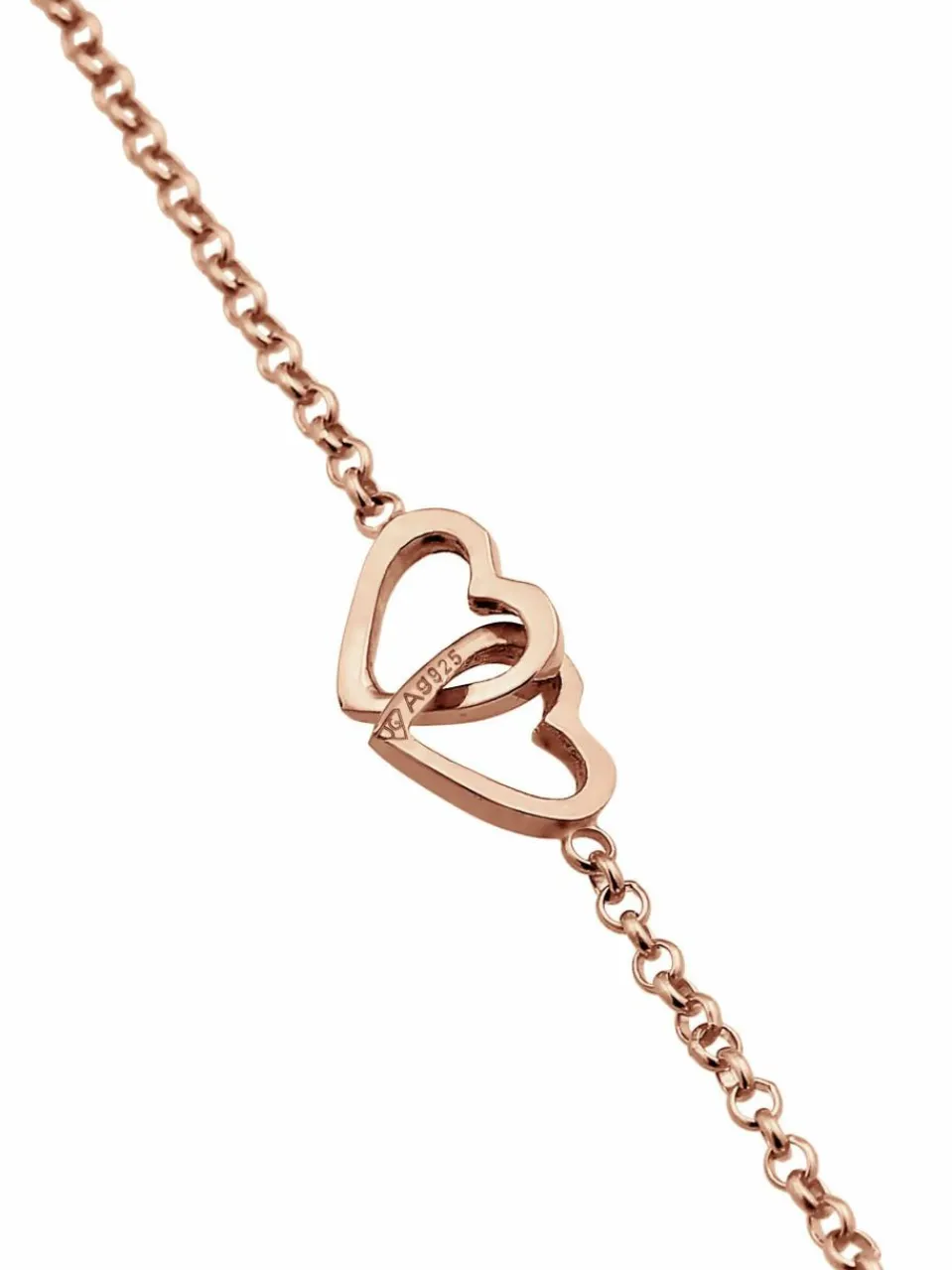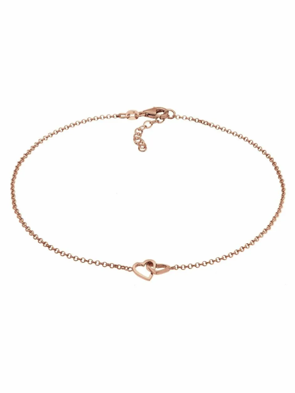 Verspielte Fuß Kette im romantischen Herzchen Look. Dieses verspielte Schmuckstück ist mit zwei ineinander verschlungenen Herzen, als Zeichen der Verbundenheit zweier Menschen. Ein filigranes Accessoire was den sommerlichen Look perfekt unterstreicht.