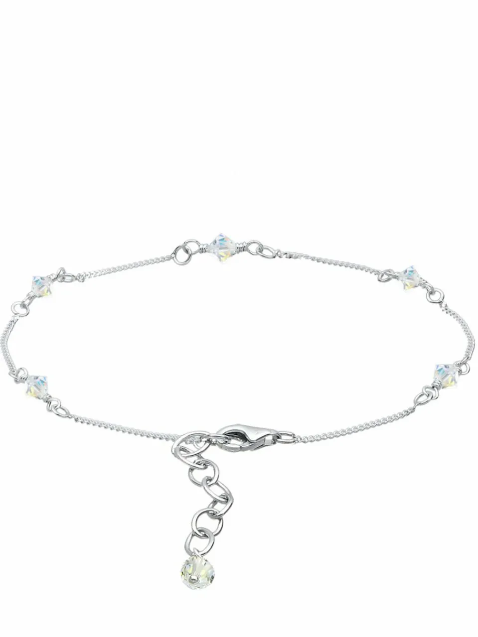 Das zeitlose Design des Damen Fußkettchens aus feinstem 925er Sterling Silber mit funkelnden Beads Kristalle ist ein absoluter Hingucker. Mit verträumter Leichtigkeit ergänzt dieser Echtschmuck dein Schmuckkästchen um ein neues feminines Highlight. Ein Must-Have für alle Frauen die Fashion und Design lieben. Das Fußkettchen ist größenverstellbar und lässt sich um + 3 cm erweitern