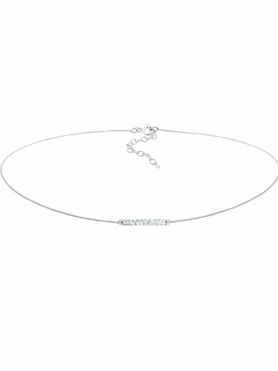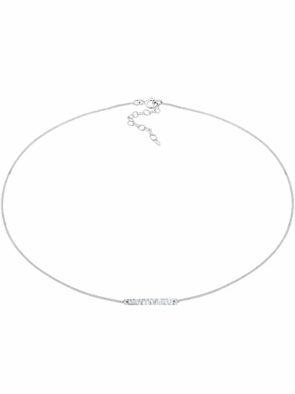 Diese kurze Damen Halskette lässt sich vielseitig kombinieren. Dieses modische Schmuckstück mit trendigem Geo-Element, ist das neue It-Piece in jeder Schmucksammlung. Das schlichte und moderne Design des gehämmerten rechteckigen Anhängers ist ein Accessoire für alle modebewussten Frauen, die Fashion lieben. Choker-Ketten liegen besonders nah am Hals an und zurzeit topaktuell.