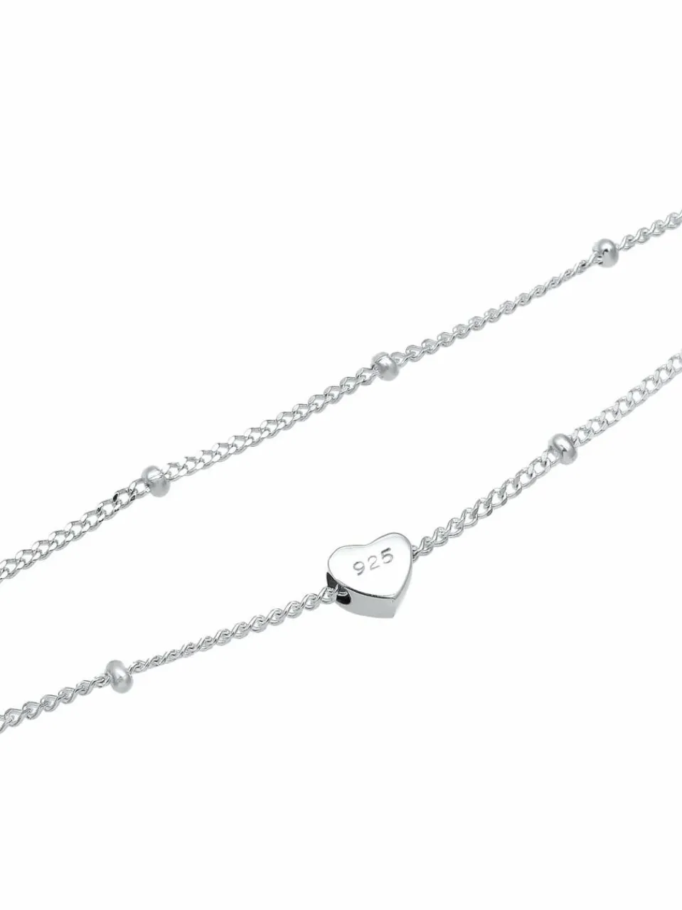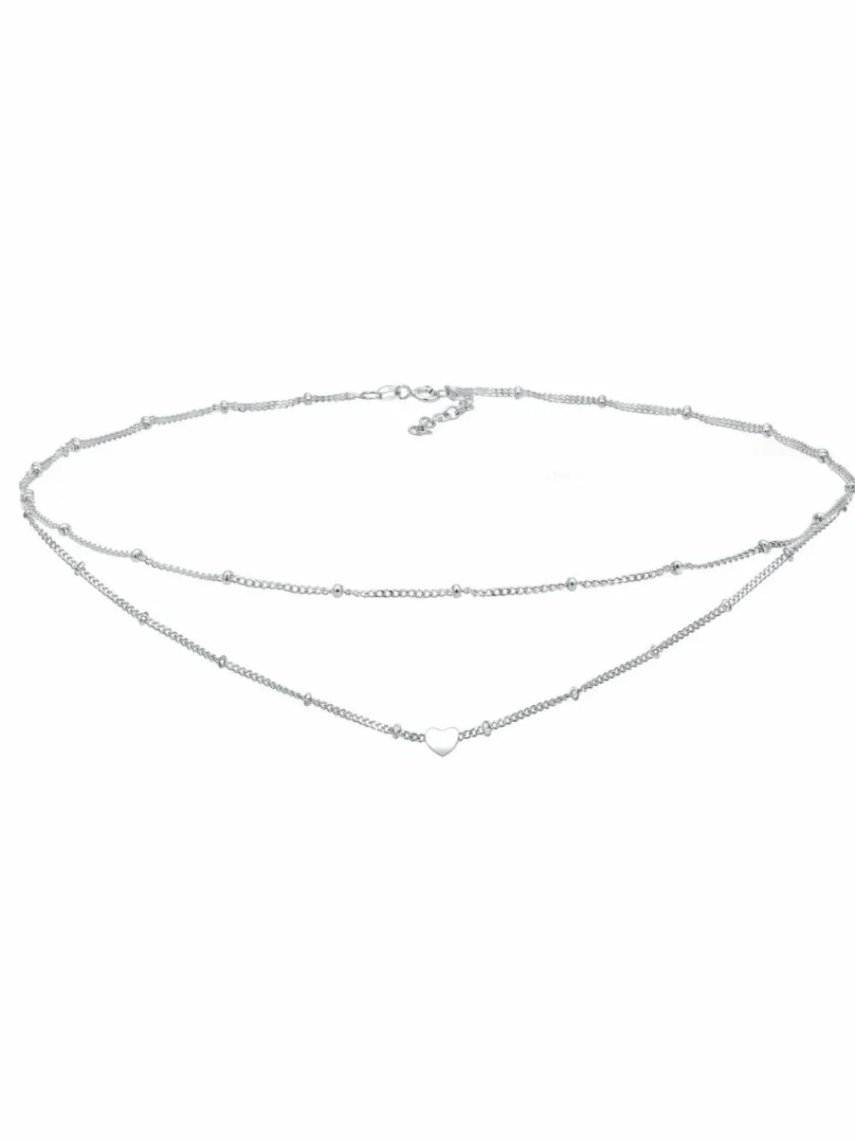 Diese modische Choker-Halskette mit romantischen Elementen ist ein Basic-Must-Have für die Frauen. Der schlichte Herz Anhänger der Panzerkette, wird durch eine weitere Kugelkette ergänzt. Ein perfektes Schmuckstück für den Alltag. Die Ketten Kombination im Layer Look, ist ein Traum für jede Fashionista und ein Accessoire das in keiner Schmucksammlung fehlen darf. Choker-Ketten liegen besonders nah am Hals an und zurzeit topaktuell. Länge der oberen Halskette: 36cm Länge der unteren Halskette: 38cm