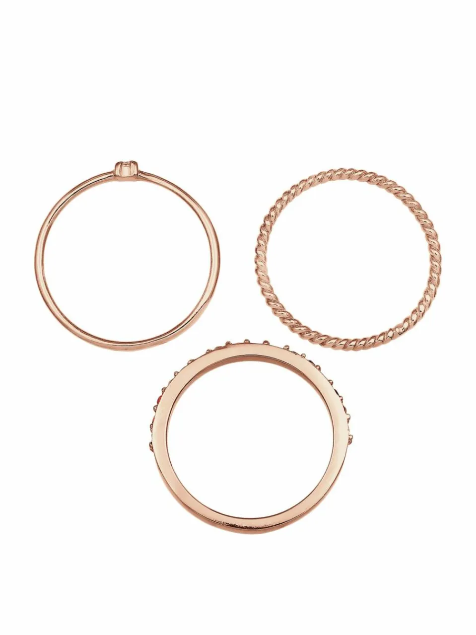 Ein einzigartiges Ring-Set für Frauen mit farbenfrohen Kristallen. Drei Ringe kombiniert in einem Schmuckstück, das sommerliche Leichtigkeit versprüht. Der funkelnde Solitärring mit einem leuchtenden Kristall , der moderne gedrehte Ring und der filigrane Bandring im Mult-Color Design, bestechen durch ihre schlichte Eleganz. Die Ringe lassen sich sowohl einzeln als auch in Kombination miteinander oder mit auffälligem Statement-Schmuck tragen und sorgen für strahlende Momente.