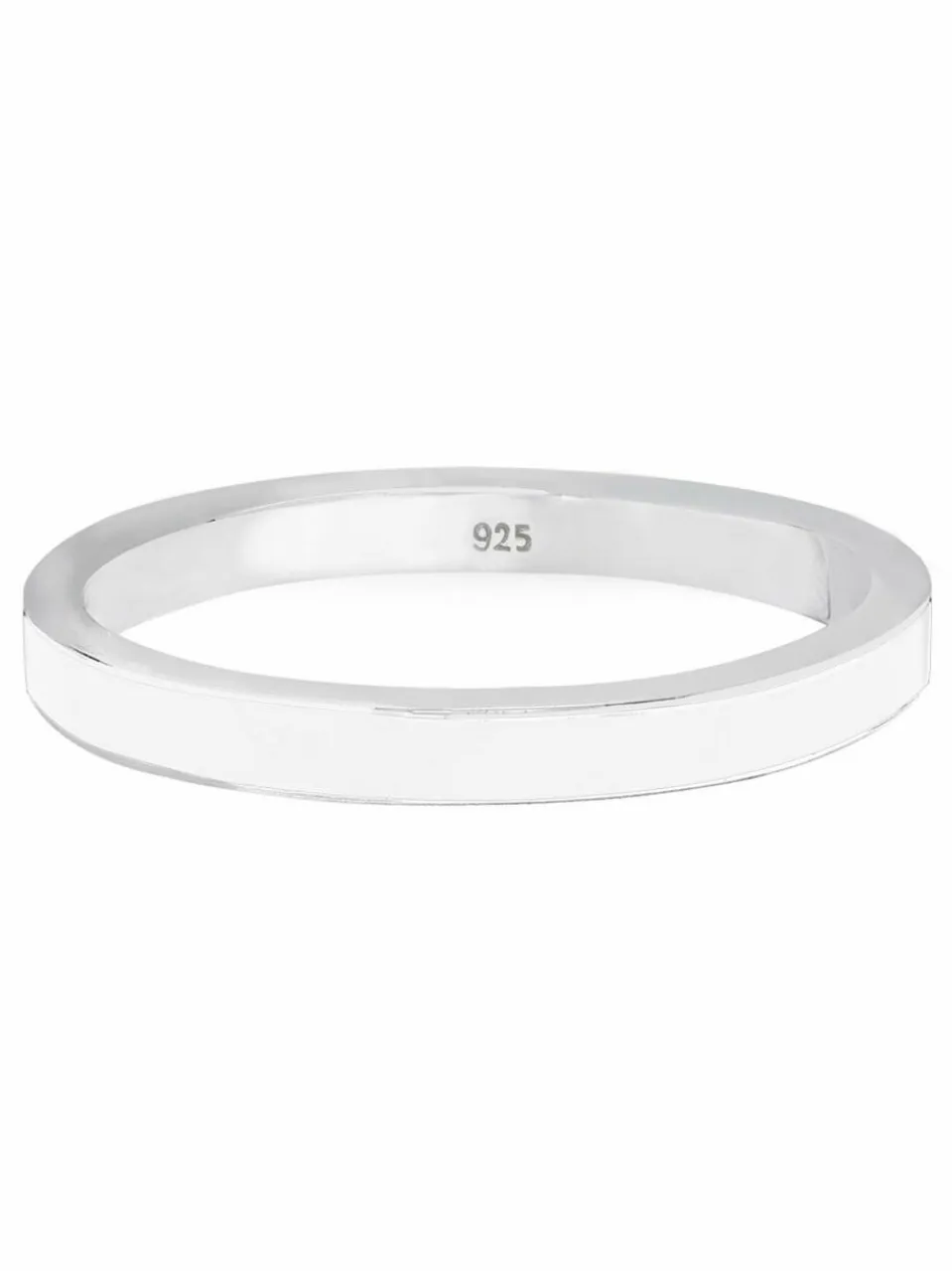 Feiner Bandring aus feinem 925er Sterling Silber, beschichtet mit Emaillelack. Dieses filigrane Schmuckstück glänzt mit seinem schlichten Design, da es sich perfekt für jeden Tag eignet. Du kannst ihn einzeln als modischen Hingucker tragen oder du stapelst ihm mit anderen Schmuckstücken. Ein treuer Begleiter für modebewusste Frauen!Weitere Hilfe zur Ringgröße:Angegebene Größe in mm entspricht Ring Innen-Umfang, Umrechnung in Ring Durchmesser Ø wie folgt:52mm Umfang = 16,5mm Ø54mm Umfang = 17,2mm Ø56mm Umfang = 17,8mm Ø58mm Umfang = 18,4mm Ø
