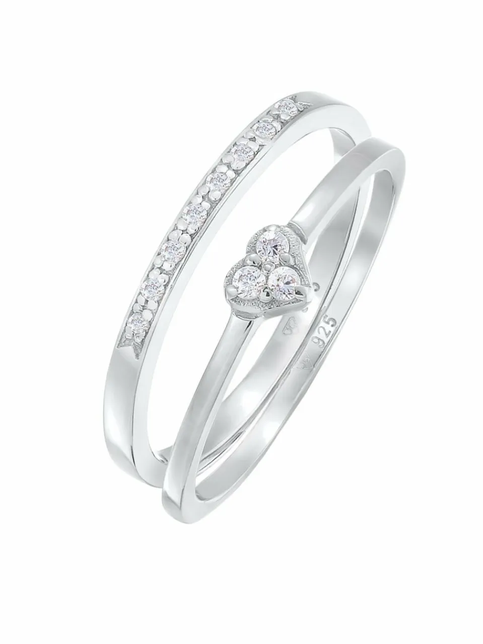 Dieses romantische Damen-Ringset, ist ein funkelndes Schmuckstück für jeden Tag. Der funkelnde Herz Ring mit Zirkonia Besatz verleiht ihrem Outfit eine raffinierte Note. Dazu harmonisch kombiniert, zaubert ein strahlender Memoire Ring mit Zirkonia Anmut und Glamour an deine Hand. Ein bezauberndes Set, das durch seinen ausdrucksstarken Chic glänzt.