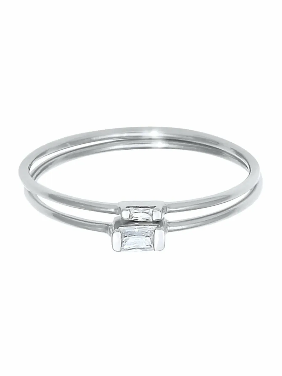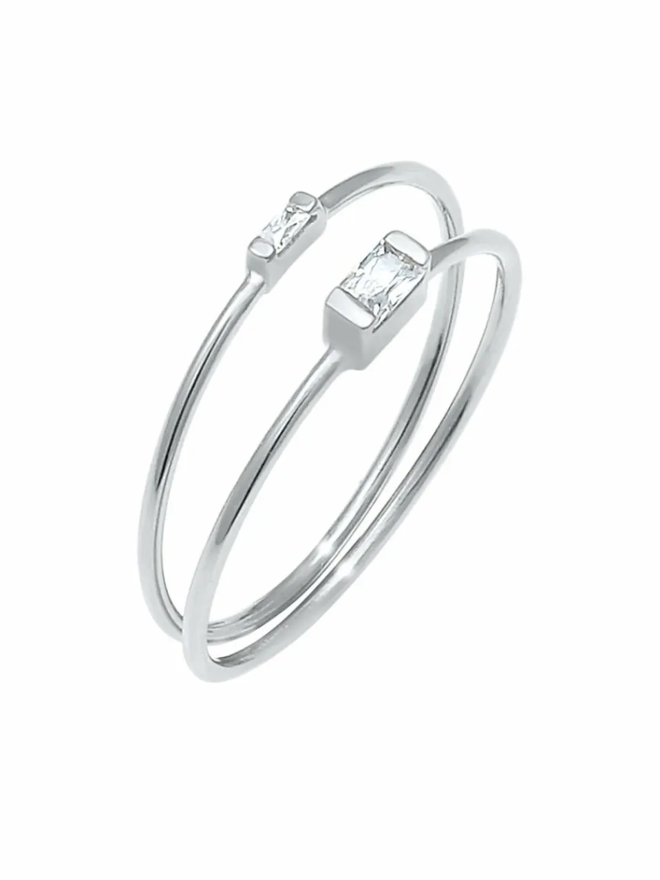 Dieses modische Ring Set, ist das perfekte Duo. Modern und puristisch in ihrer Form, ergänzen sich perfekt beide Zirkonia Ringe. Die Stapelringe mit je einem rechteckigen Zirkonia Kristall, lassen sich sowohl einzeln, als auch in Kombination miteinander oder mit auffälligem Statement-Schmuck tragen.