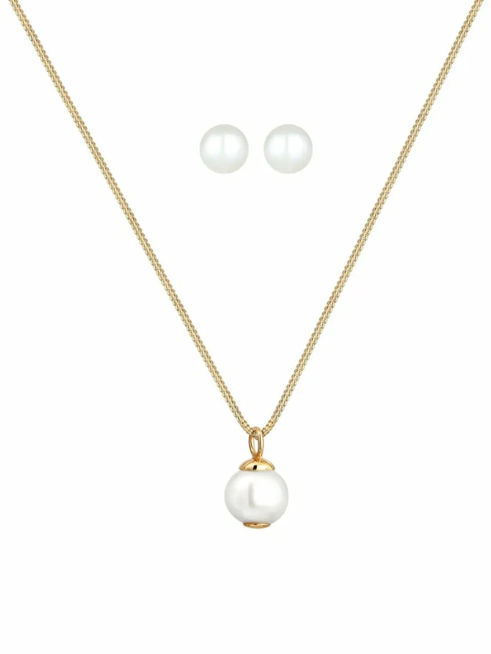 - Schmuckstücke in Silber, Set aus Halskette mit Perlenohrstecker