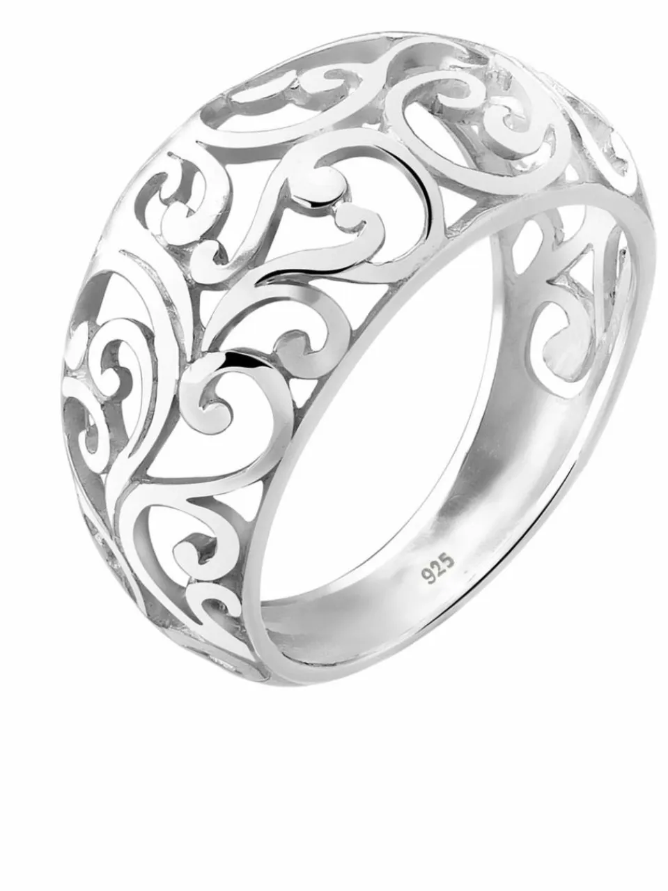 Breiter Ring in leicht gewölbter Form mit feinem Ornament aus bestem 925er Sterling Silber. Das fein verarbeitete Key-Piece erinnert an wunderschöne Blumenranken und verhilft jedem Look zu einer femininen Ausstrahlung.Weitere Hilfe zur Ringgröße:Angegebene Größe in mm entspricht Ring Innen-Umfang, Umrechnung in Ring Durchmesser Ø wie folgt:52mm Umfang = 16,5mm Ø54mm Umfang = 17,2mm Ø56mm Umfang = 17,8mm Ø58mm Umfang = 18,4mm Ø