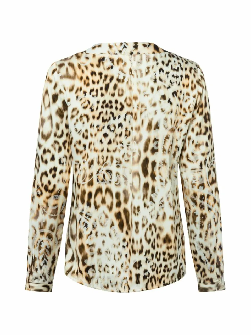 Das Blusenshirt von Emily van den Bergh aus herrlich fließender Viskose begeistert im Muster-Mix mit geripptem V-Ausschnitt.
