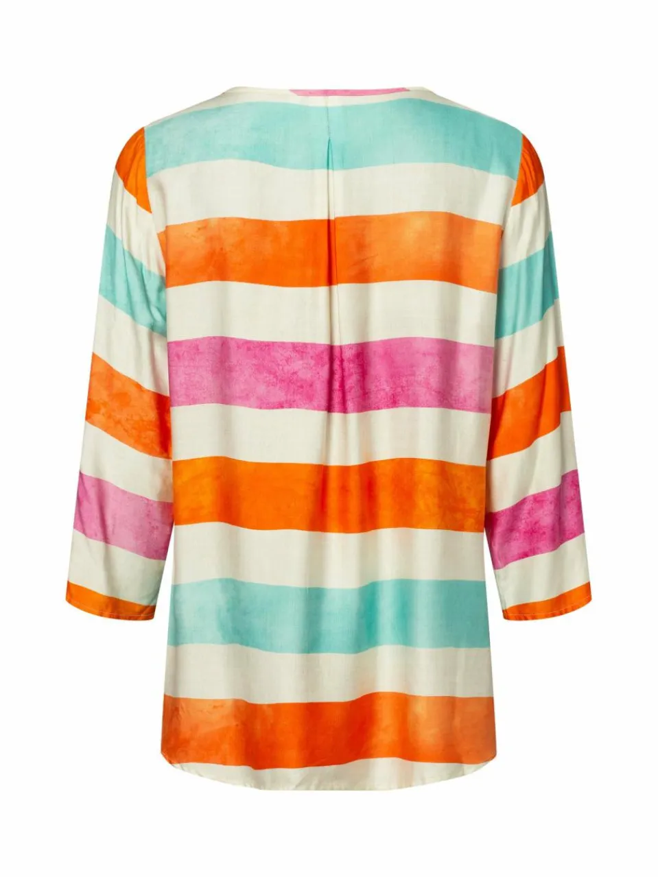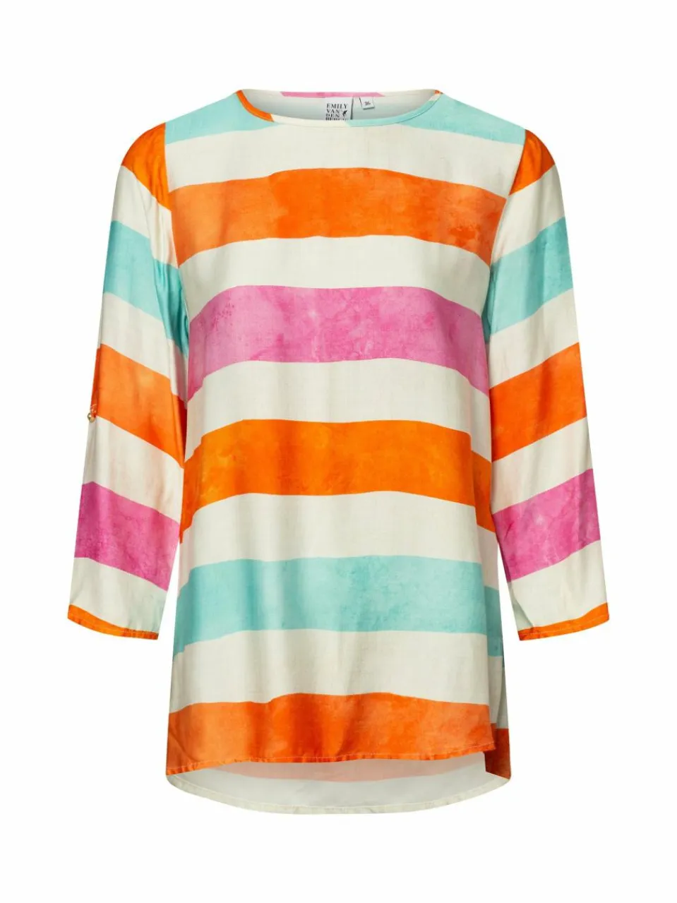 Luftiges Blusenshirt von Emily in weiter Passform aus leichter Viskose, mit U-Boot-Ausschnitt, Dreiviertelärmeln, rückseitig verlängertem Saum und Seitenschlitzen für einen eleganten, komfortablen Look.