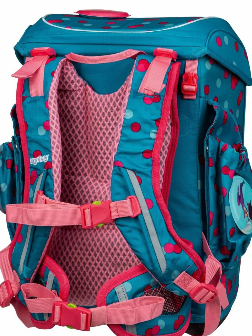 Leichtes und robustes Set von ergobag für zierliche Kinder ab der 1. Klasse, aus wasser- und schmutzabweisendem Polyester. Mit viel Stauraum und inklusive Federmappe, Schlampermäppchen und Sportbeutel.