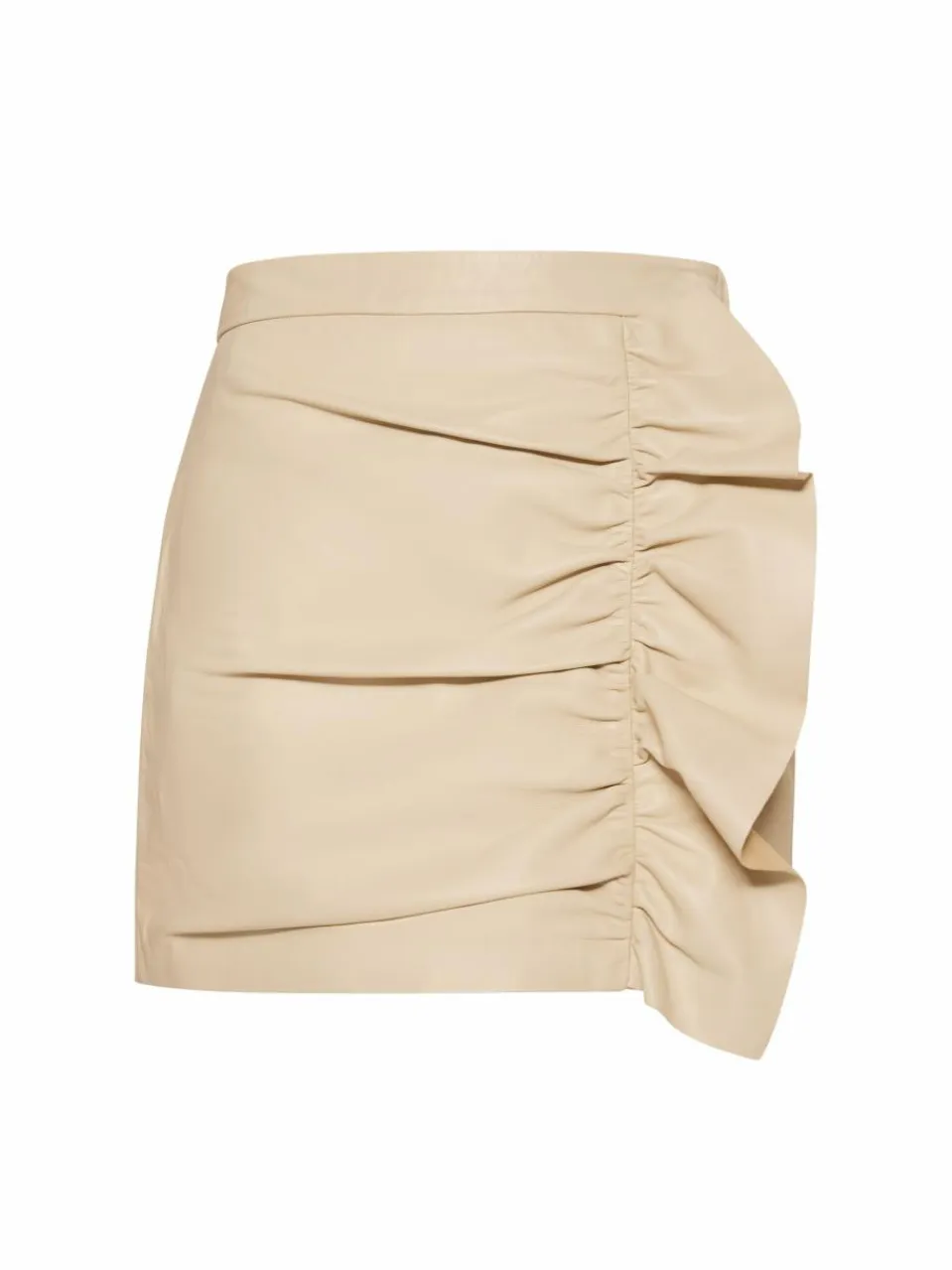 Mit diesem Minirock aus Leder präsentiert faina ein raffiniertes Design, dass durch die Raffung und die große Rüsche modisch betont wird. Das hochwertige Lammleder und die körpernahe Passform ergänzen das unifarbene Design, das Sie mit klassischen Stilettos perfekt in Szene setzen. Abgerundet wird der Rock mit einem seitlichen Nahtreißverschluss.