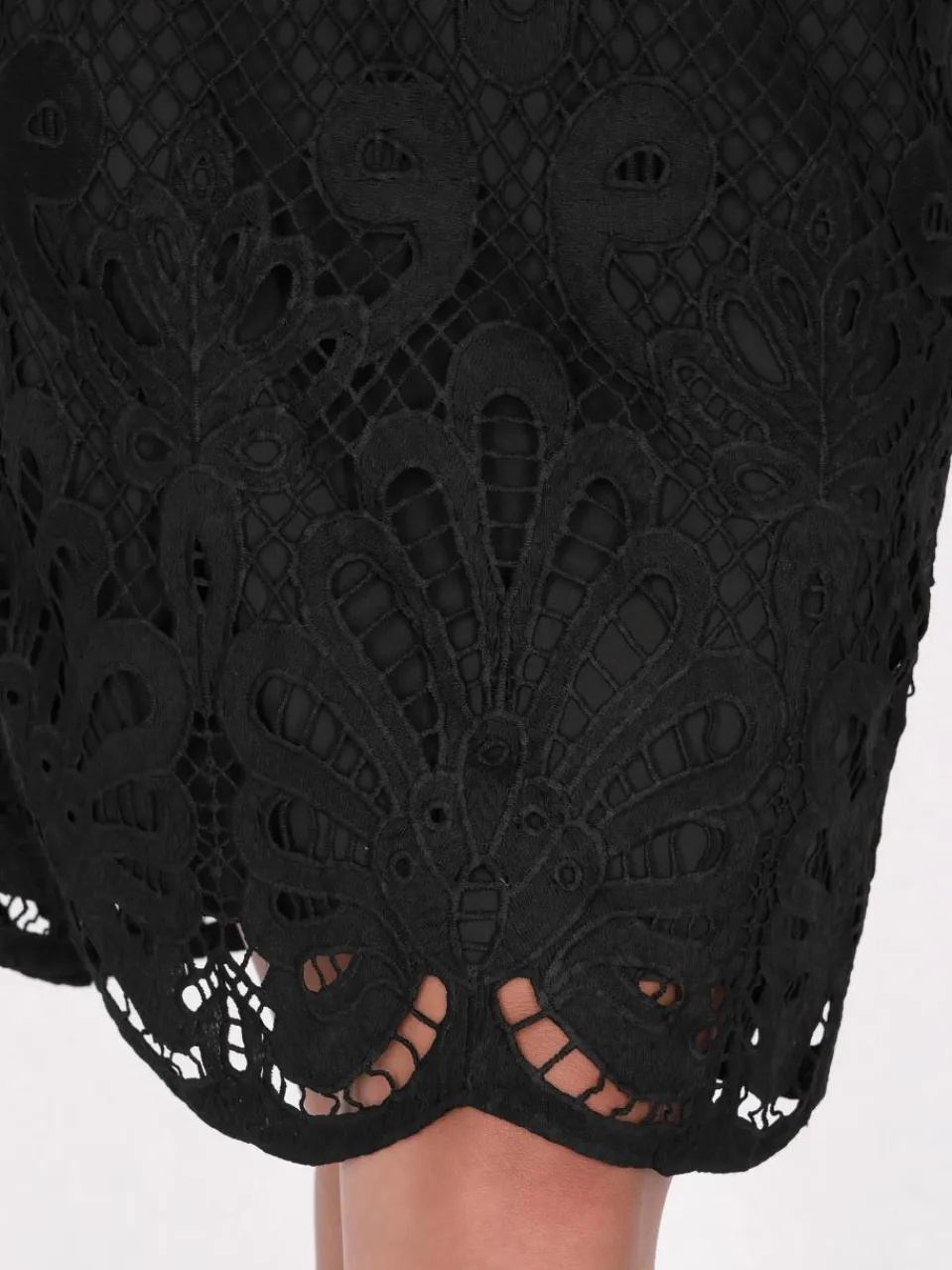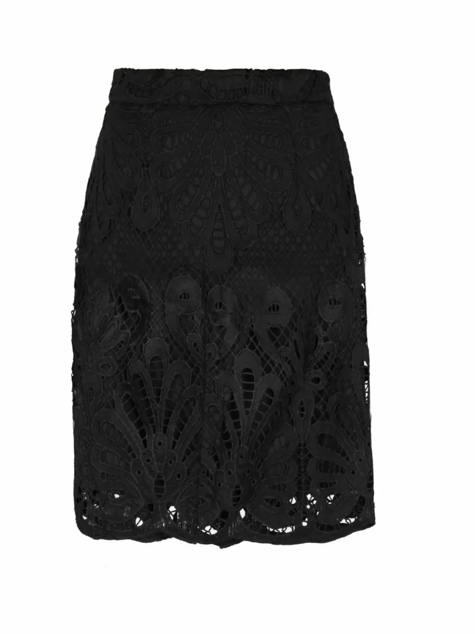 Crafted with precision, the corded lace pencil skirt is a masterpiece of elegance. The intricate floral and geometric lace overlay adds a touch of sophistication to your cocktail attire. Featuring a fitted waistband and an A-line silhouette, this skirt exudes charm and grace. The scalloped hem follows the contours of the corded lace design, creating a stunning visual impact. Perfect for any occasion where you want to make a statement with your style. This product is a part of Summer Coctail Collection
