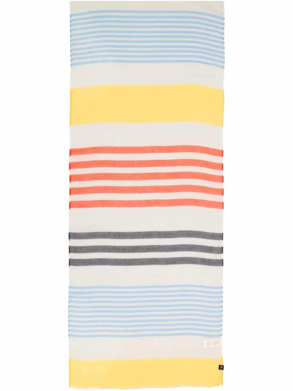 Sommer-Farben sorgen für gute Laune: Der leichte Schal mit Streifen in unterschiedlichen Farben und Breiten passt zu Ihrem Sommer-Outfit und ist ihr verlässlicher Begleiter im Alltag. Mit seinen 50 x 180 cm passt er sowohl zum Casual Outfit als auch zum schicken Blazer fürs Office. Der FRAAS Schal besteht aus Polyester, das aus gebrauchten (Post-Consumer) PET-Flaschen gewonnen wurde. Dieses recycelte Polyester spart bis zu 53 % Energie im Vergleich zu herkömmlicher Herstellung und kann selbst erneut wiederverwendet werden.