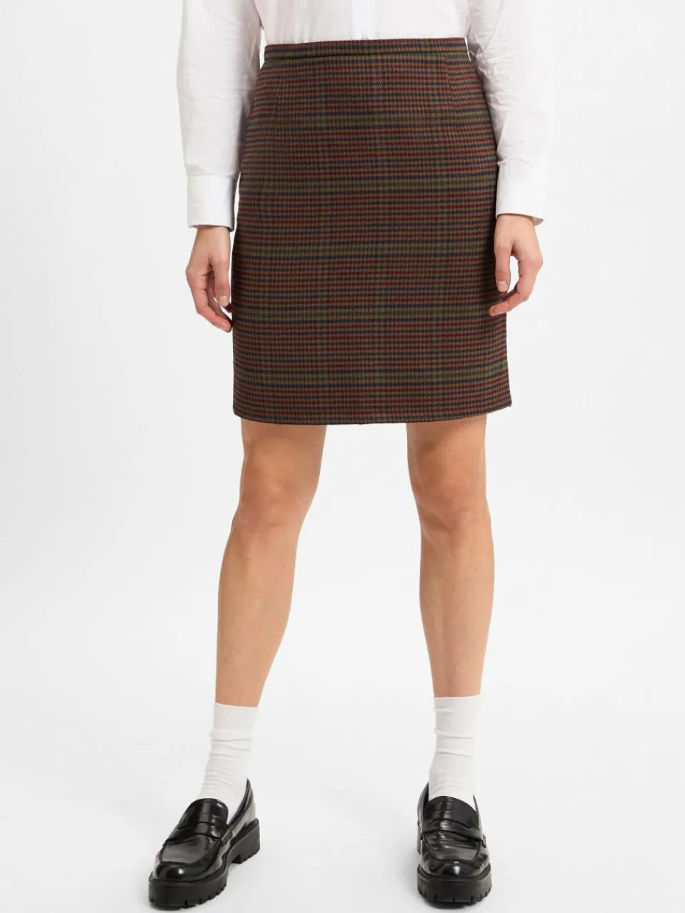 Schöne Basis für moderne Collegelooks oder stilvolle Bürokombinationen: Franco Callegaris Rock im schlichten Karodesign.