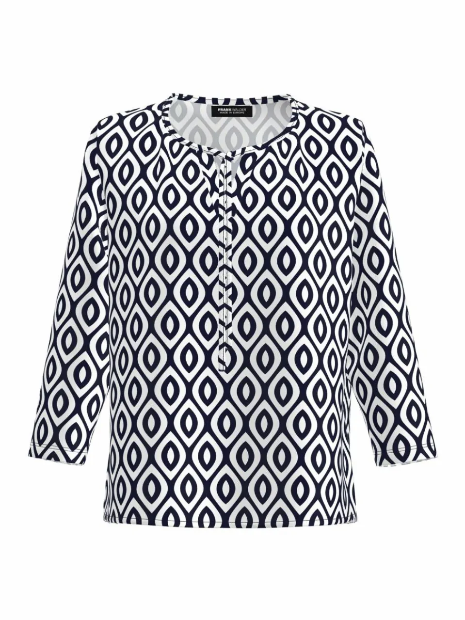 Frank Walder Blusen<Damen Blusenshirt weiß blau gemustert