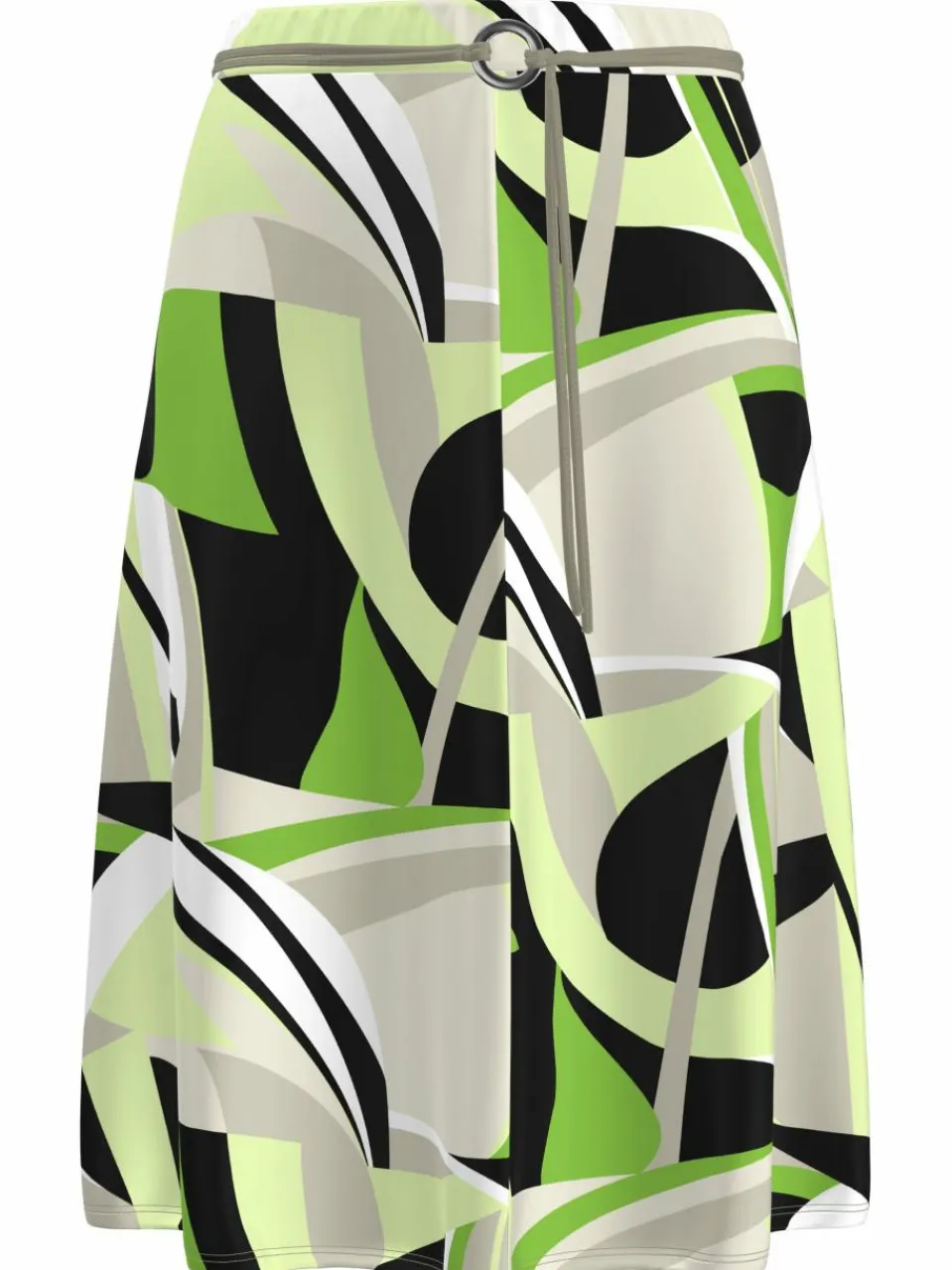 Ein ausgestellter Rock mit elastischem Bund und Gürtel-Detail. Der fließende Stoff sorgt für Bewegungsfreiheit und einen femininen Look. Ideal für vielseitige Kombinationen und verschiedene Anlässe