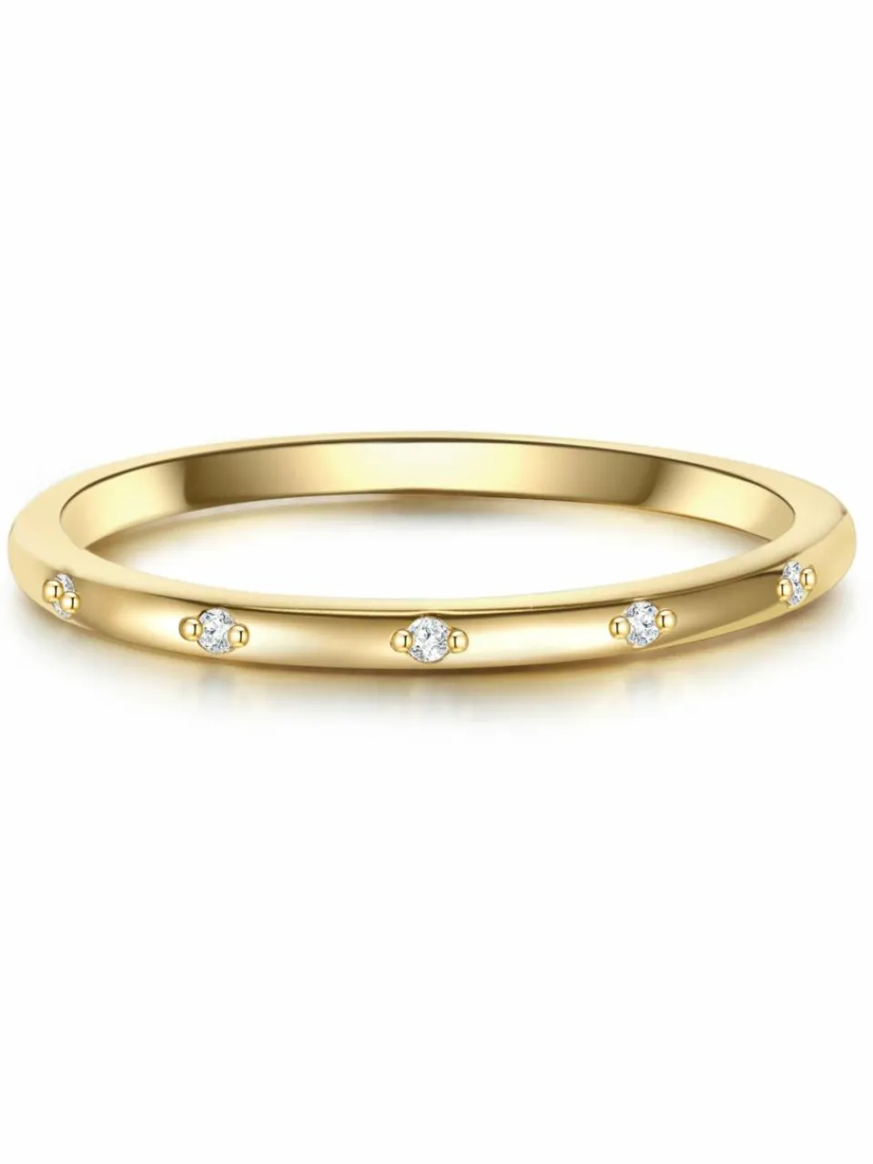 Du hast ein Faible für kombinationsfreudigen Schmuck, der zu möglichst vielen Outfits passt? Dann wird dich dieser filigrane Ring des Labels Glanzstücke München begeistern! Eyecatcher sind die winzigen Zirkonia-Kristalle, die bündig in die Ringschiene eingelassen und damit besonders gut geschützt sind. Aus hochwertigem 925er Sterling Silber gefertigt und mit Gelbgold veredelt, punktet das Schmuckstück bei allen Fans der klassischen Goldnuance.