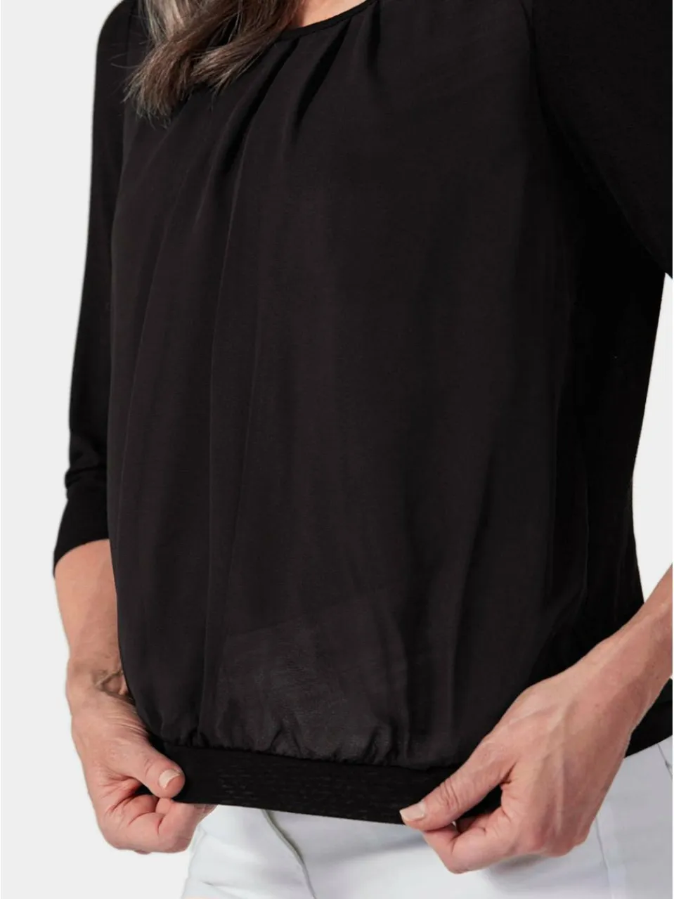 Goldner Blusen<Damen Blusenshirt – Chiffon-Shirt mit 3/4-Arm, Rundhals schwarz uni
