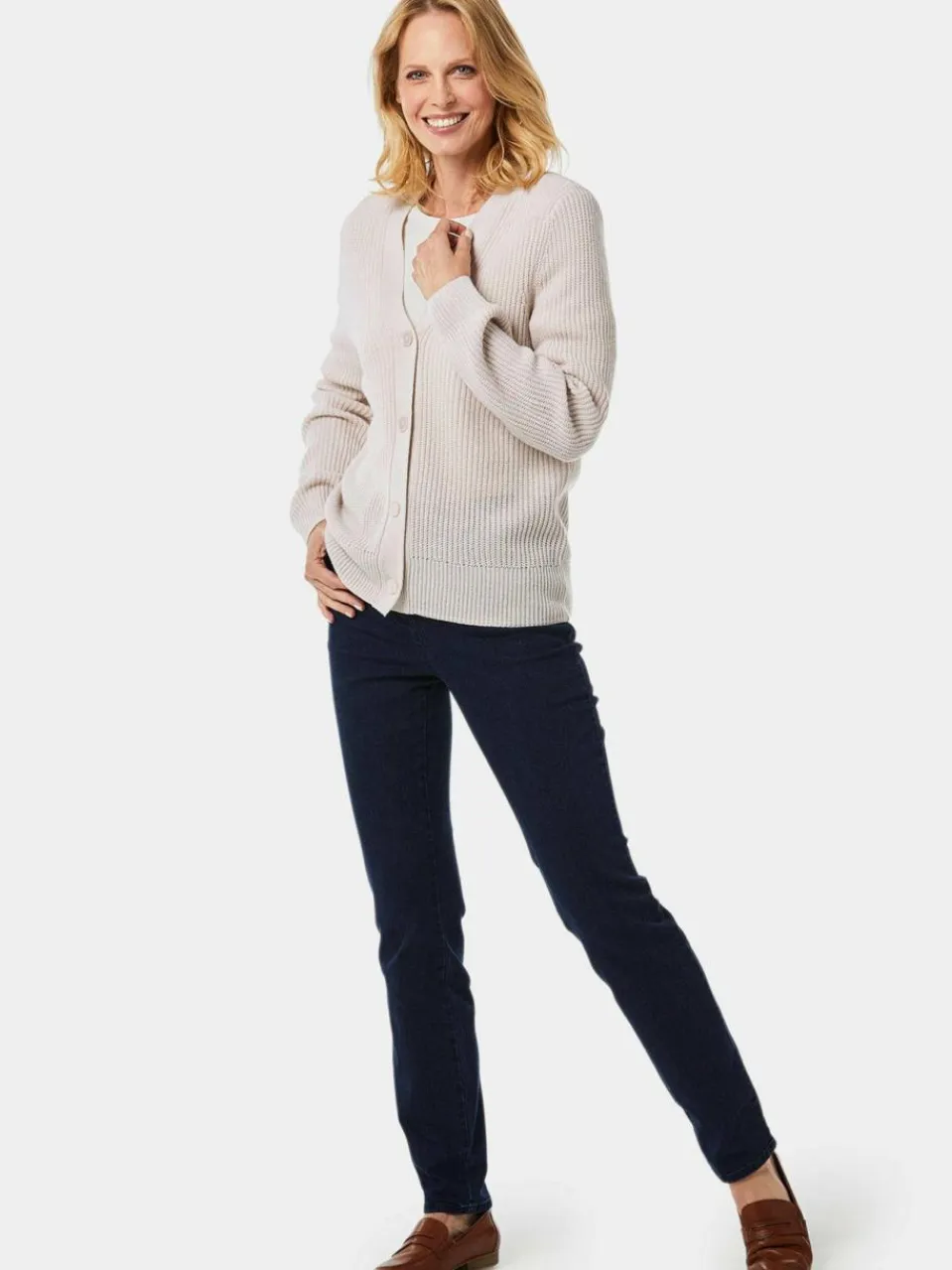 Goldner Pullover & Strickjacken<Damen Strickjacke – Pflegeleichte Strickjacke in hochwertiger Rippenstruktur beige uni