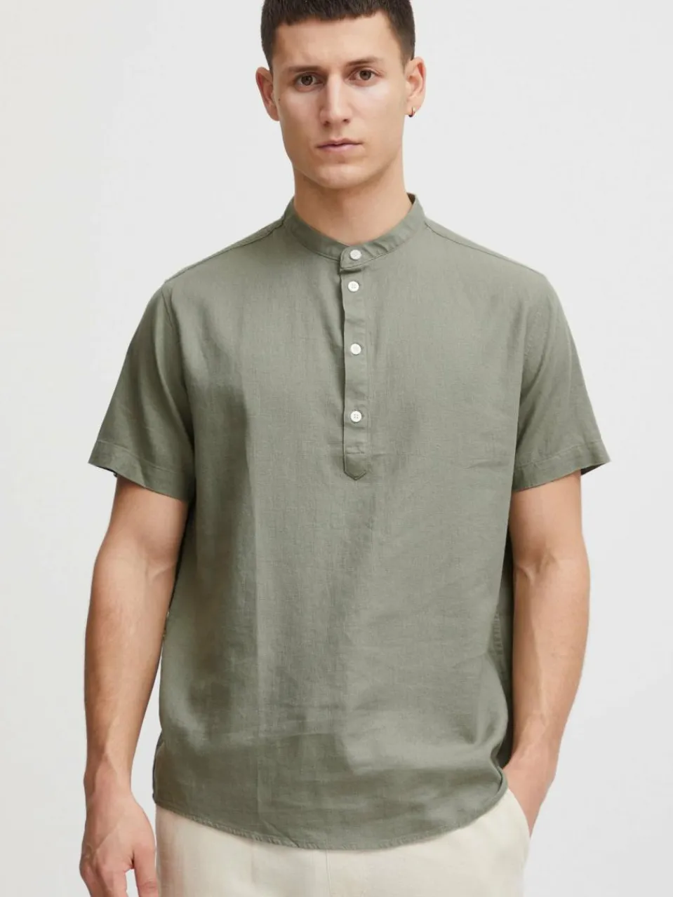 - Kurzarmhemd aus Leinenmix
