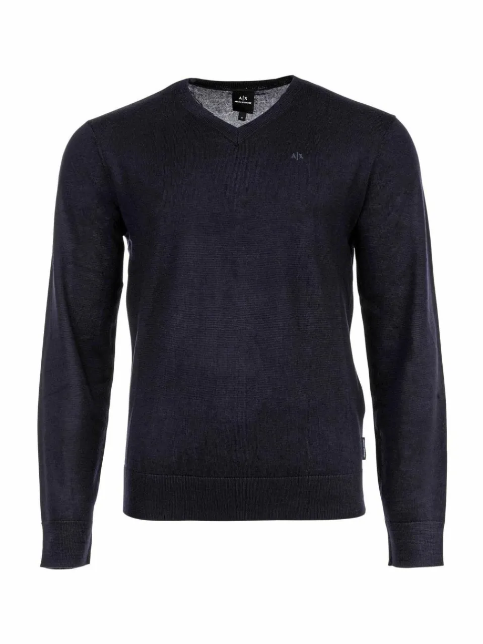 Hochwertiger Feinstrick-Pullover von der Marke ARMANI EXCHANGE. Aus reiner Schurwolle, mit V-Ausschnitt und dezenter Logo-Stickerei.